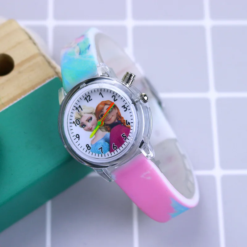 Nouvelle princesse Elsa enfants montres pour filles garçons bracelet en Silicone mignon dessin animé lapin dinosaure Flash lumière enfants montres horloge reloj infantil