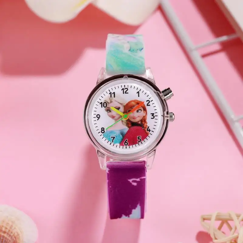 Montres pour enfants Disney Princess Elsa, bracelet en silicone pour filles, dessin animé, lumière luminescente, montre-bracelet Spider Man pour enfants, reloj infantil