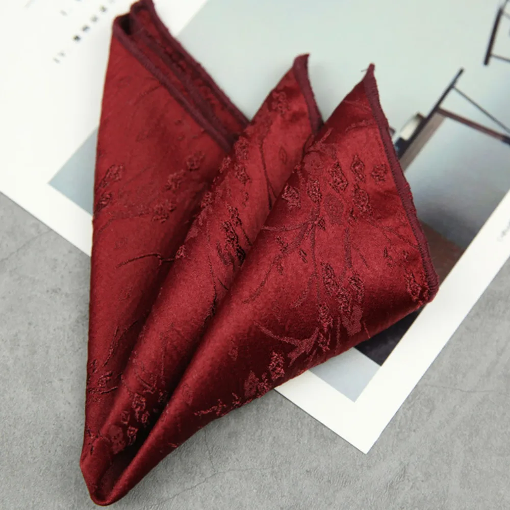 Mouchoir de Poche Noir et Blanc à Motif de Fleurs Foncées pour Homme, Écharpe de Poitrine d'Affaires en Polyester, Vin, Mouchoir Solide