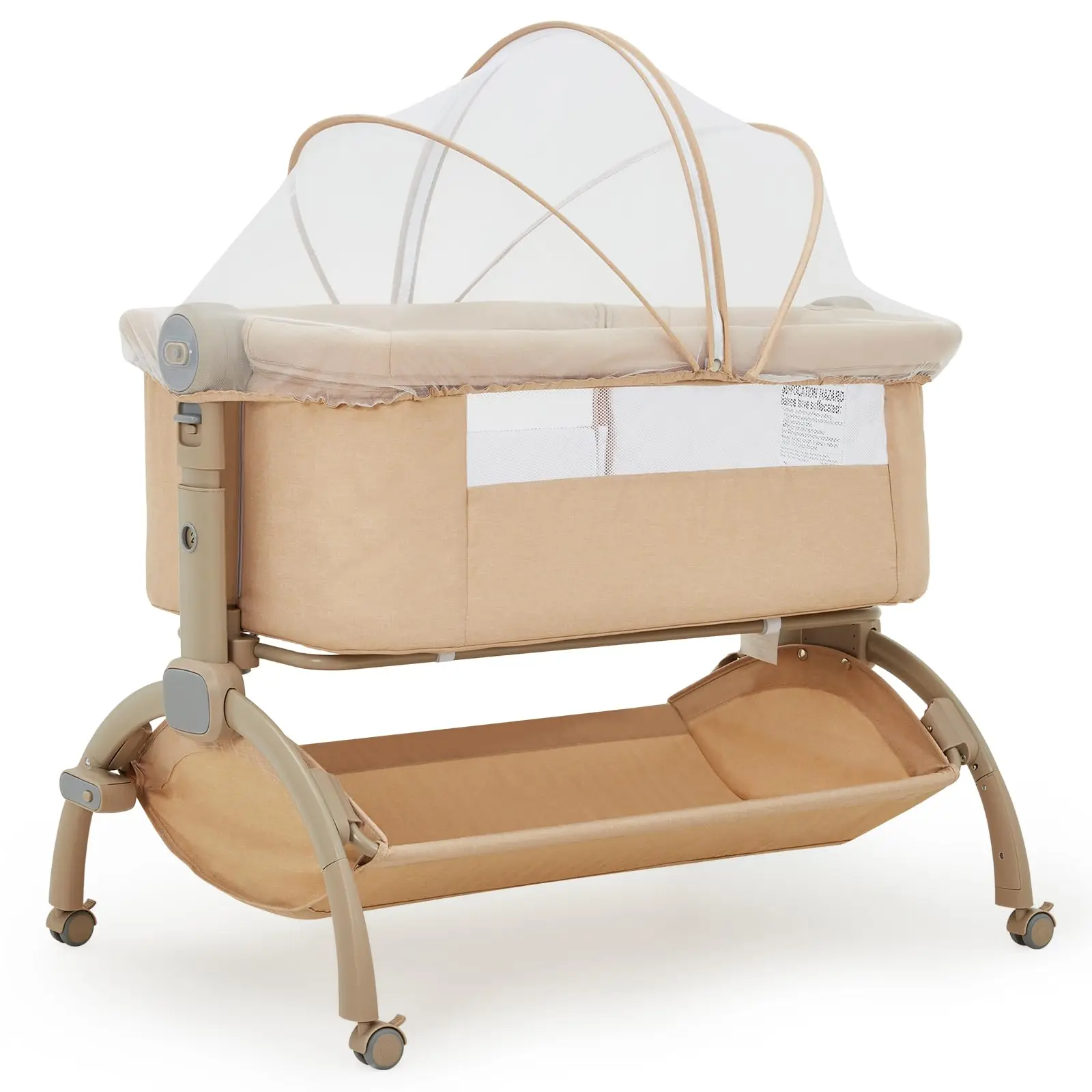 Basculez facilement entre 3 modes : attaché à votre lit (co-sleep en toute sécurité) → berceau autonome → mode sieste avec moustiquaire🛏️.Les roues verrouillables vous permettent de le déplacer d'une pièce à l'autre en douceur !
