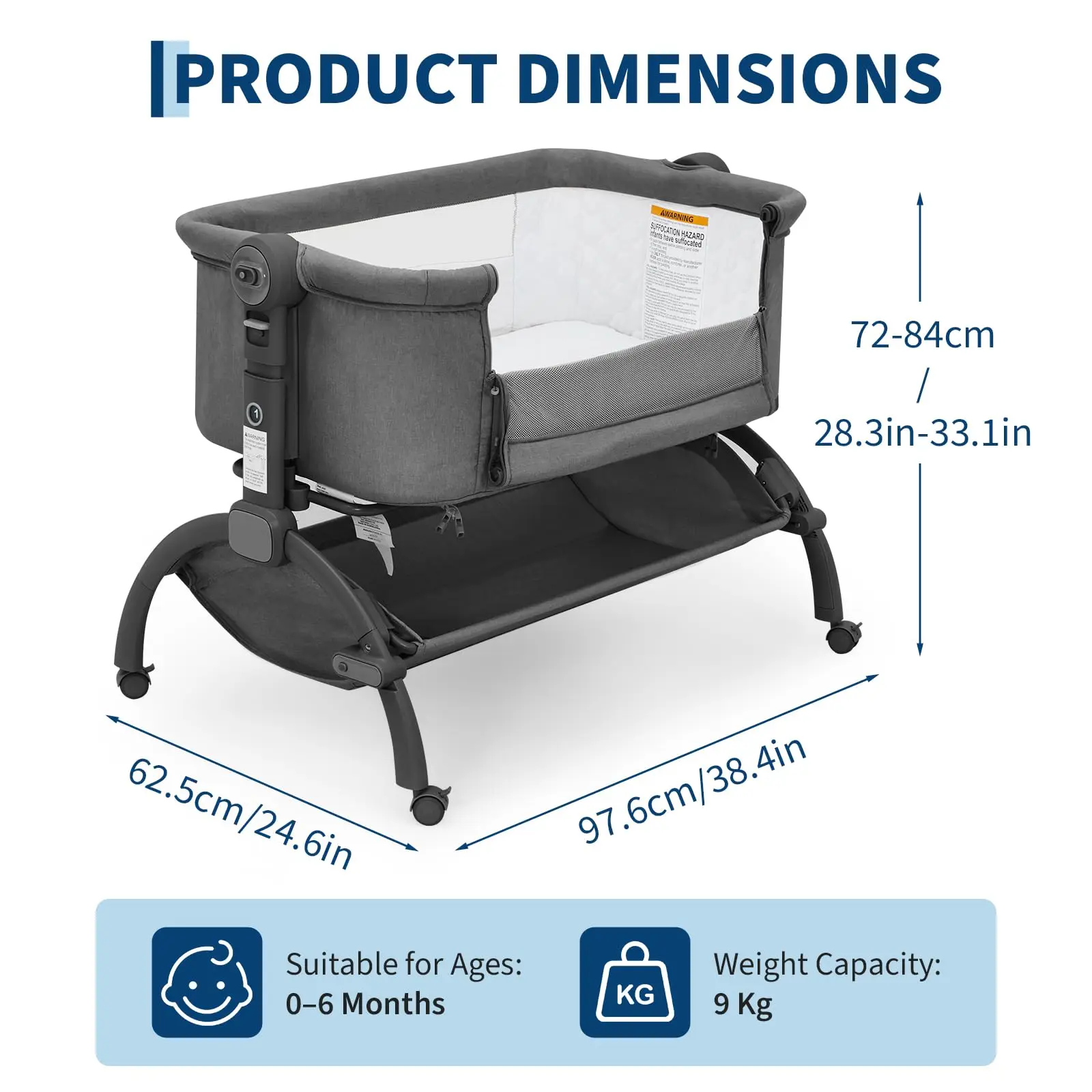 1.🛡️ Alignez la hauteur du berceau avec celle de votre lit (sans espace) et bloquez les roulettes avant de dormir à côté de votre bébé ; ne placez pas d'oreillers/couvertures supplémentaires à l'intérieur (conforme aux normes de sécurité européennes).