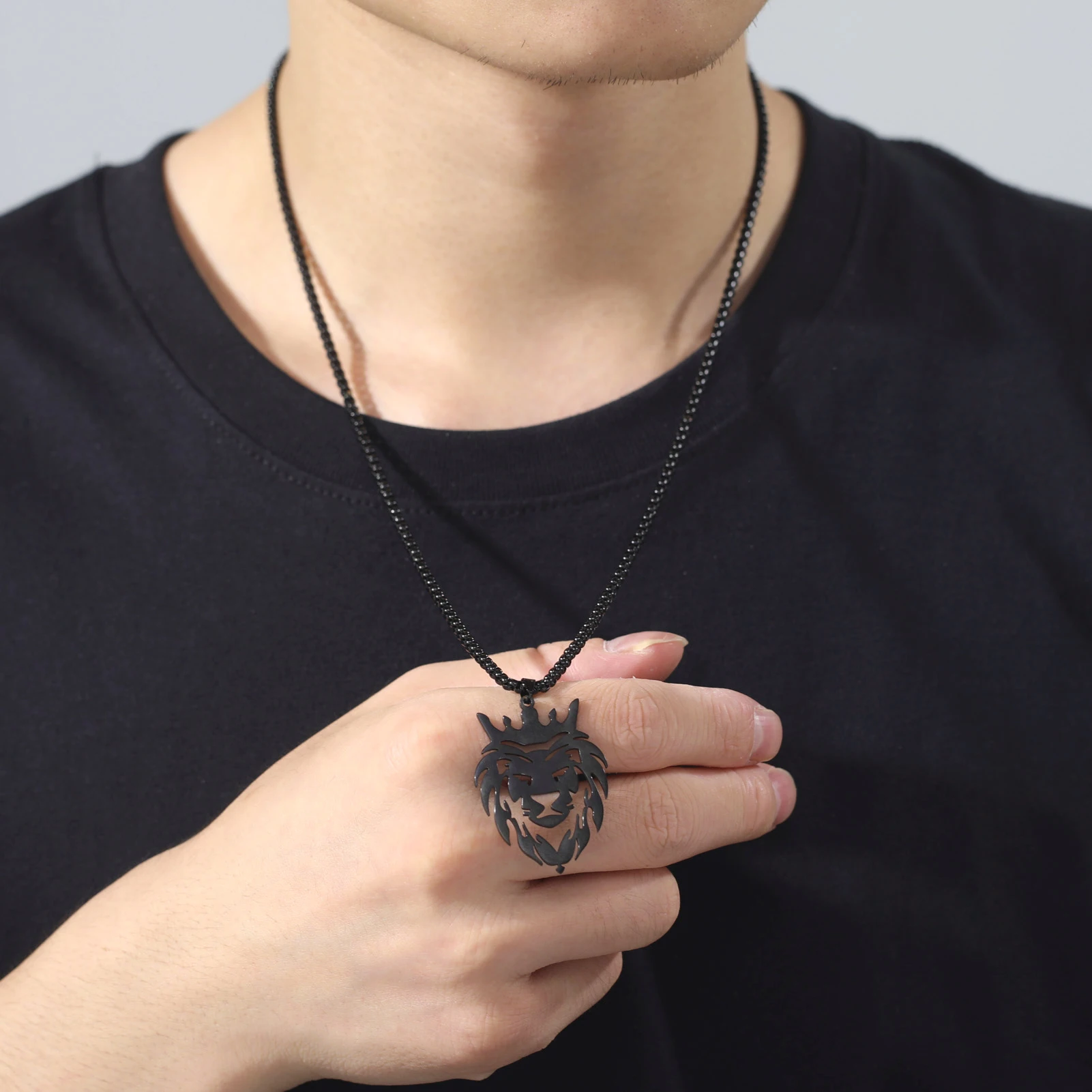 My Shape Roi Lion couronne pendentif collier hommes garçon en acier inoxydable punk animal loup charme collier Hip Hop bijoux,collier garcon enfan,coliers pour enfants garçon de,chaine homme