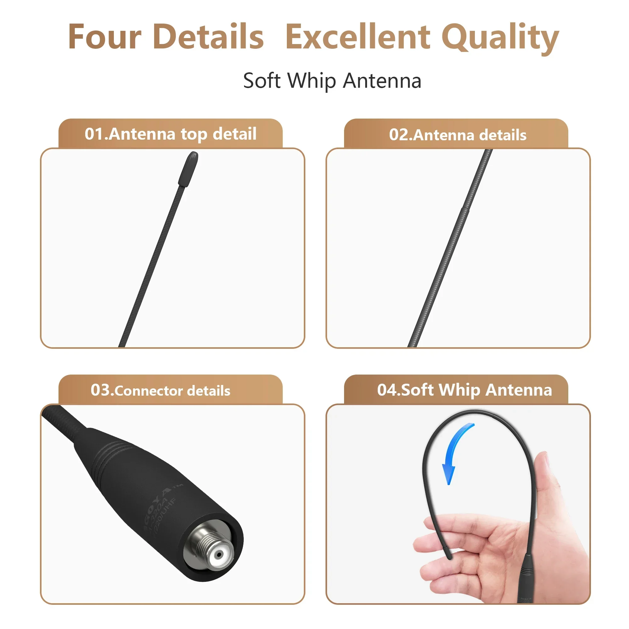 Antenne fouet souple: l'antenne souple est facile à plier et n'est pas facilement endommagée, ce qui la rend adaptée à une utilisation dans une variété d'environnements.