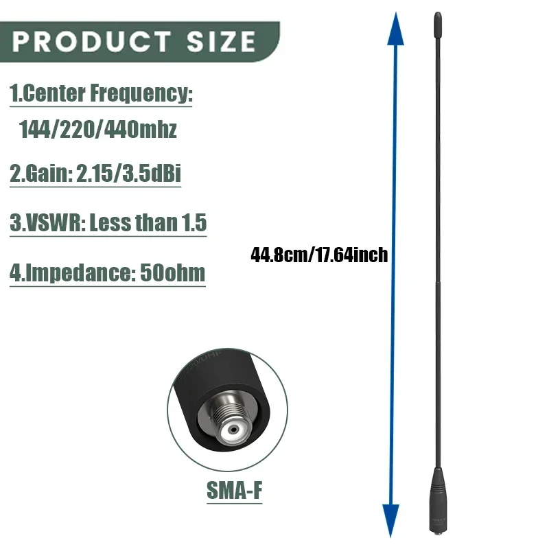 10. Longueur d'antenne: 44.8cm/17.64 pouces
