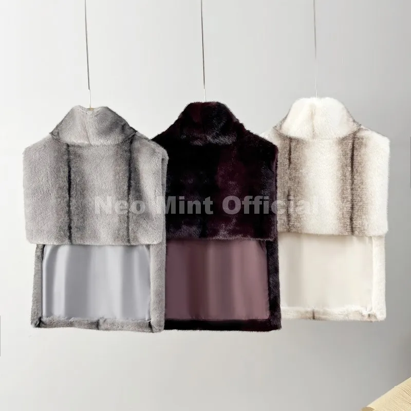 Neo Mint luxe fausse fourrure de vison gilet haut gilet femmes automne hiver nouveau col haut sans manches fourrure veste manteau Ins Chic hauts courts