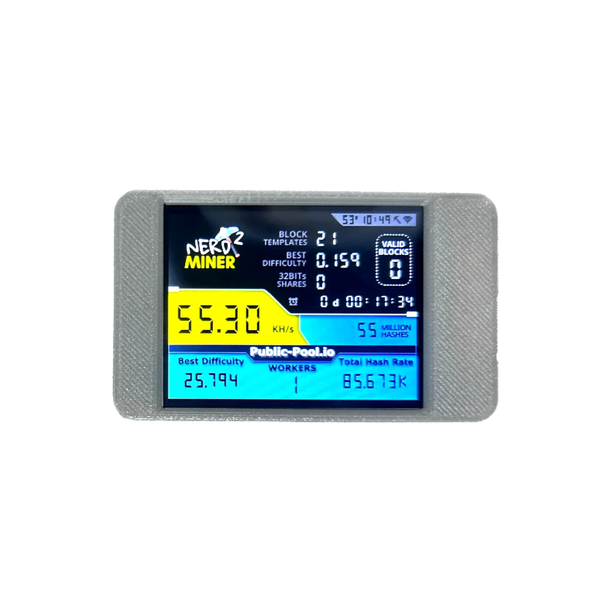 1. Tout d’abord, chargez la machine.Une fois la machine allumée, scannez le code QR sur l'écran de la machine pour vous connecter au wifi ; ou recherchez le WiFi nommé NerdMinerAP sur l'interface WiFi pour vous connecter.Le mot de passe WiFi de NerdMinerAP est MineYourCoins et l'IP est 192.168.4.1.