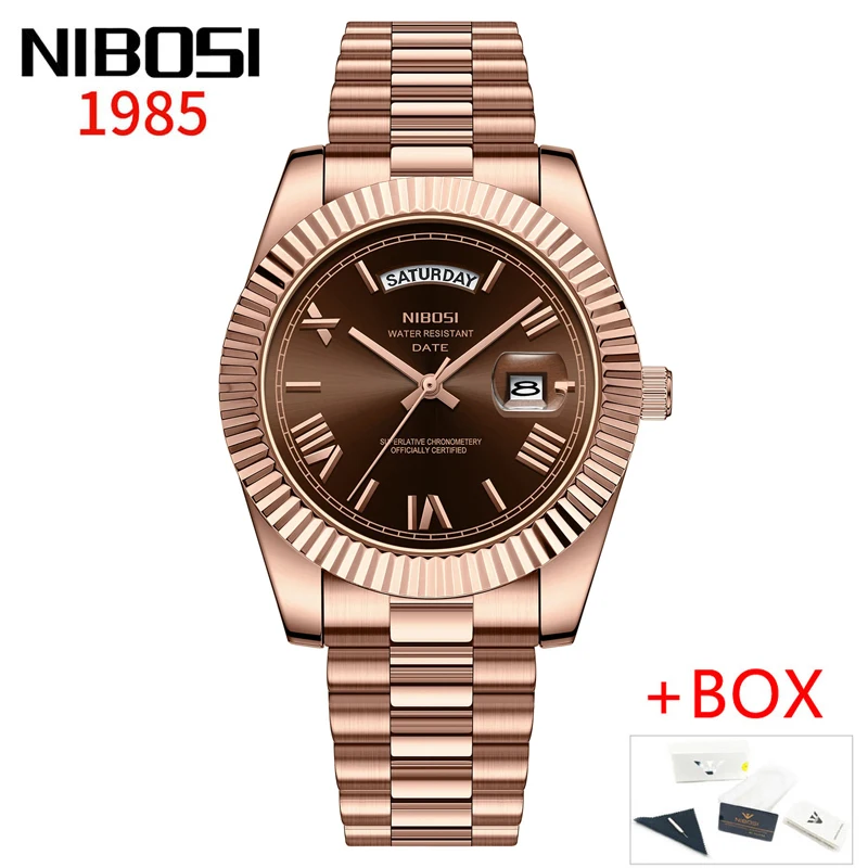 NIBOSI marque de luxe or rouge montre à Quartz pour hommes en acier inoxydable étanche lumineux Date semaine mode hommes montres Reloj Hombre