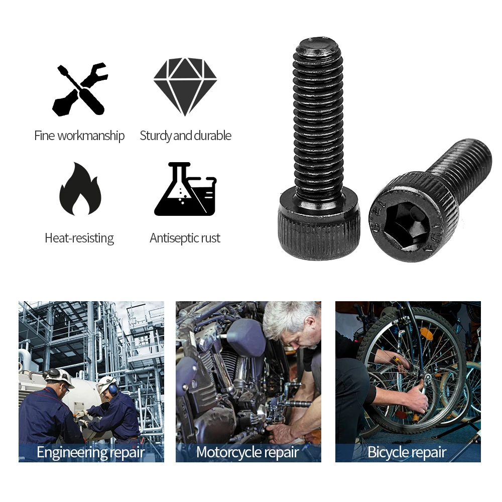 2. And the compact thread is not easy to be out of shape and slid in the process of screwing. The deep and clear hex sockets and heads can make your working more easily.