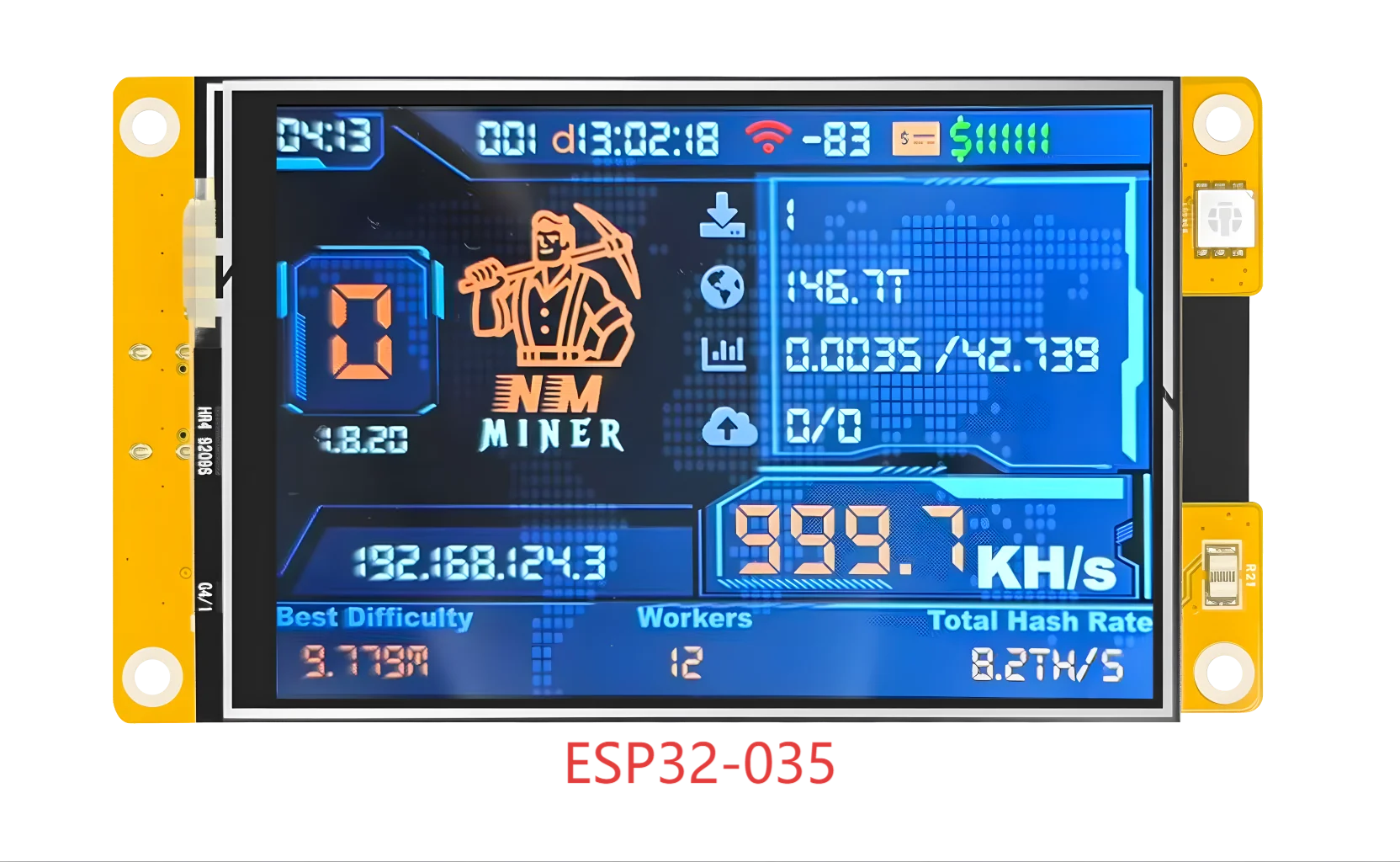 Le micrologiciel d'algorithme spécialement optimisé améliore le hashrate à 960KH/s, augmentant la probabilité de gagner la loterie de 1750 % (Nerdminer v2 seulement 55KH/s).