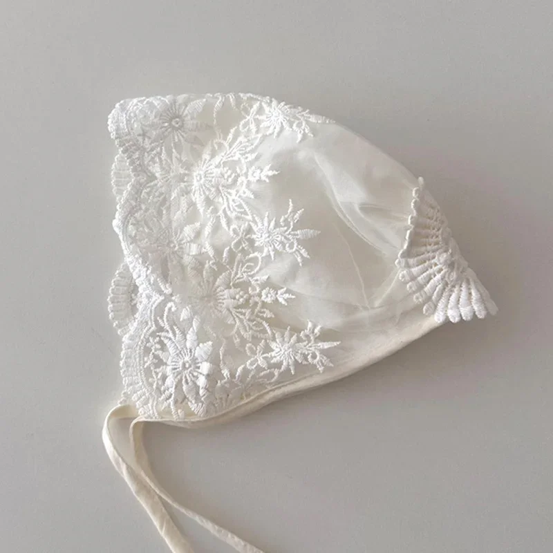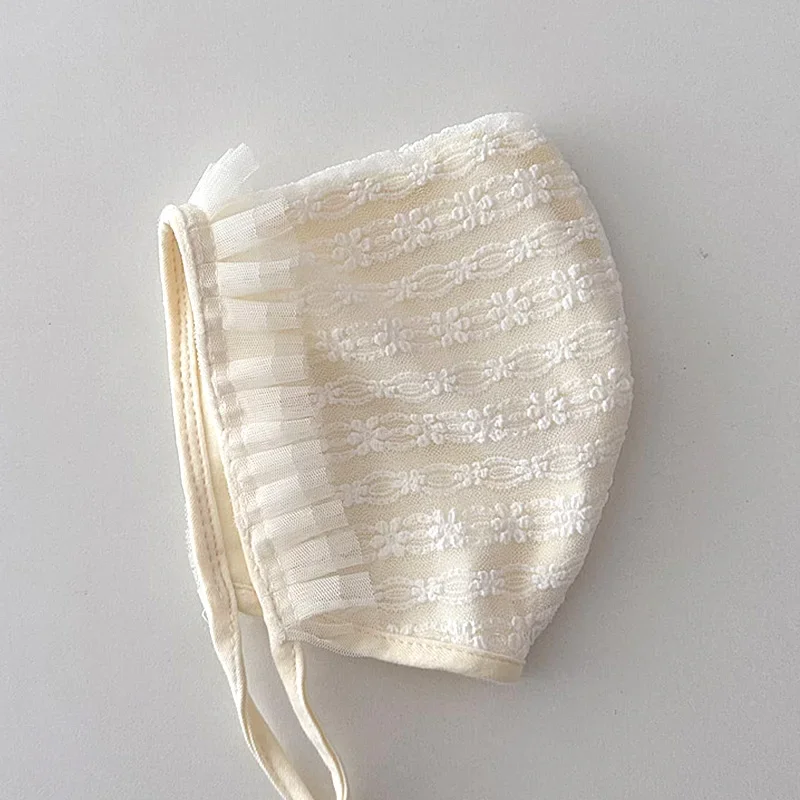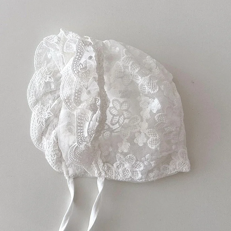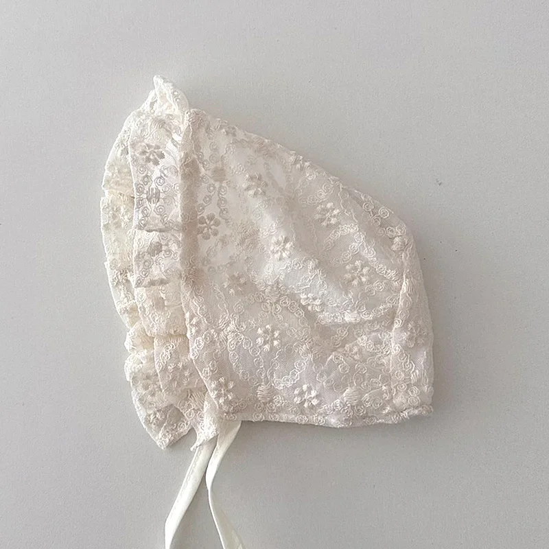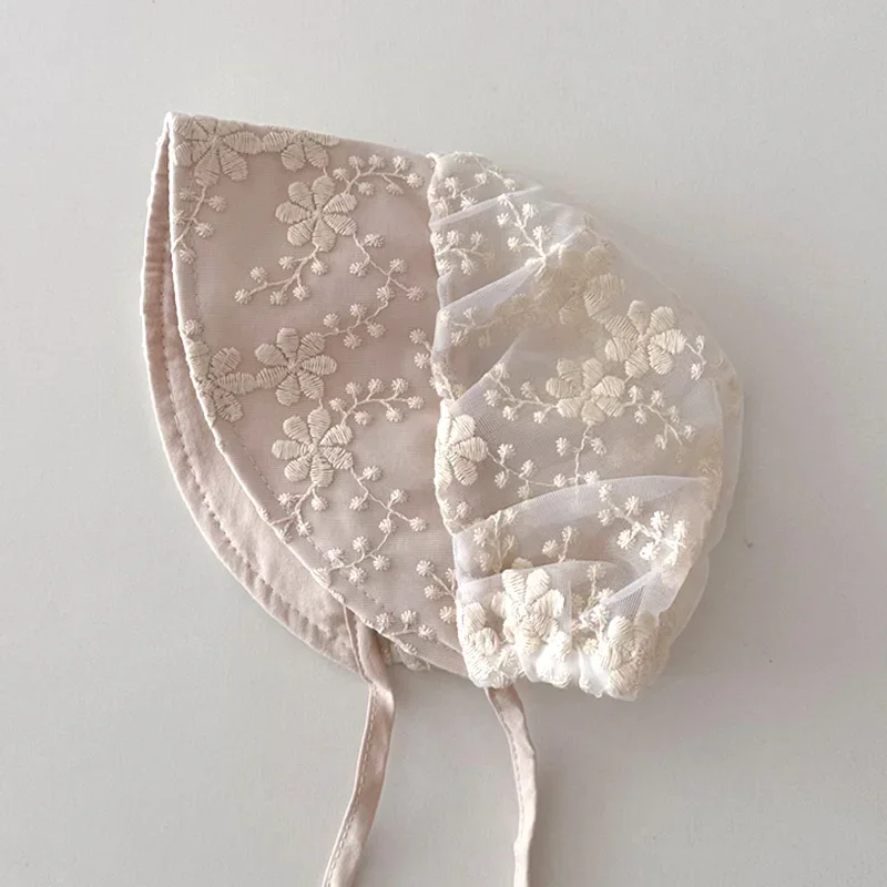 Nouveau bébé Bonnet dentelle nouveau-né fille baptême chapeau pour 0-6 mois filles coton été infantile dentelle fleur maille chapeau broderie Court Cap