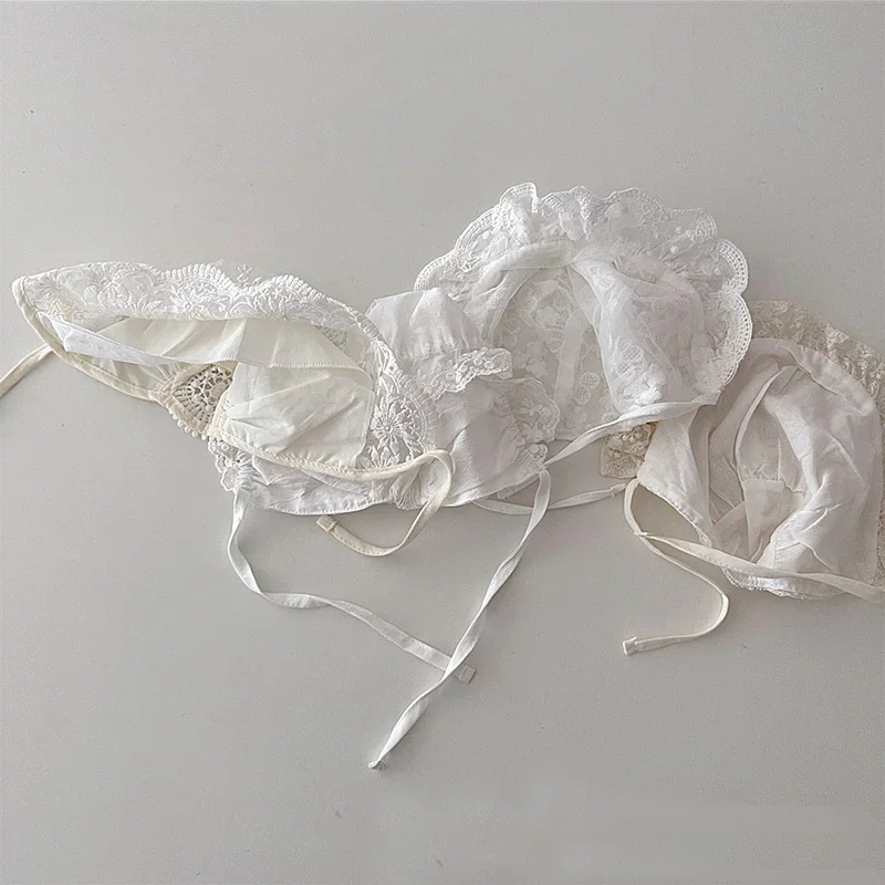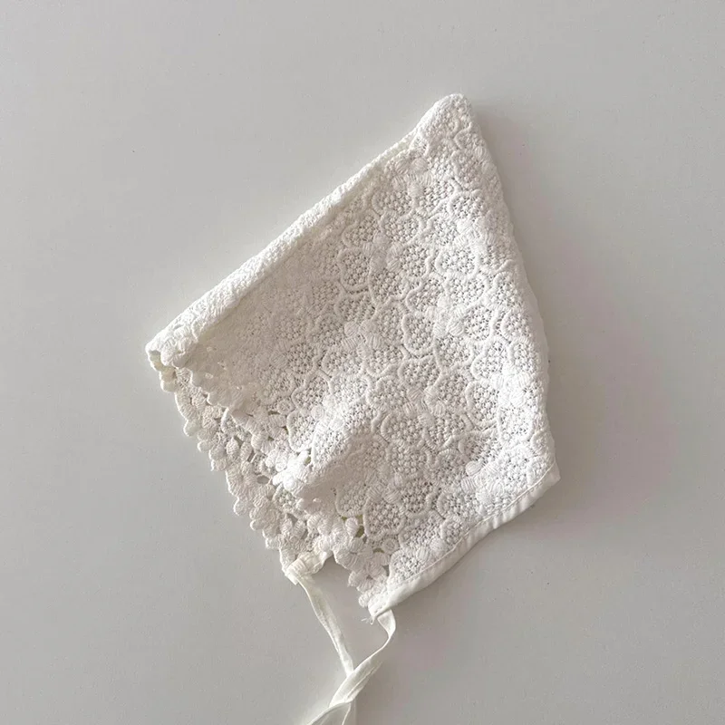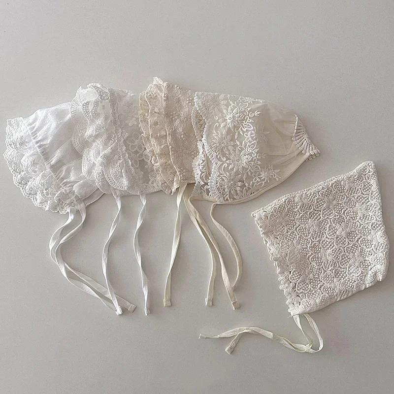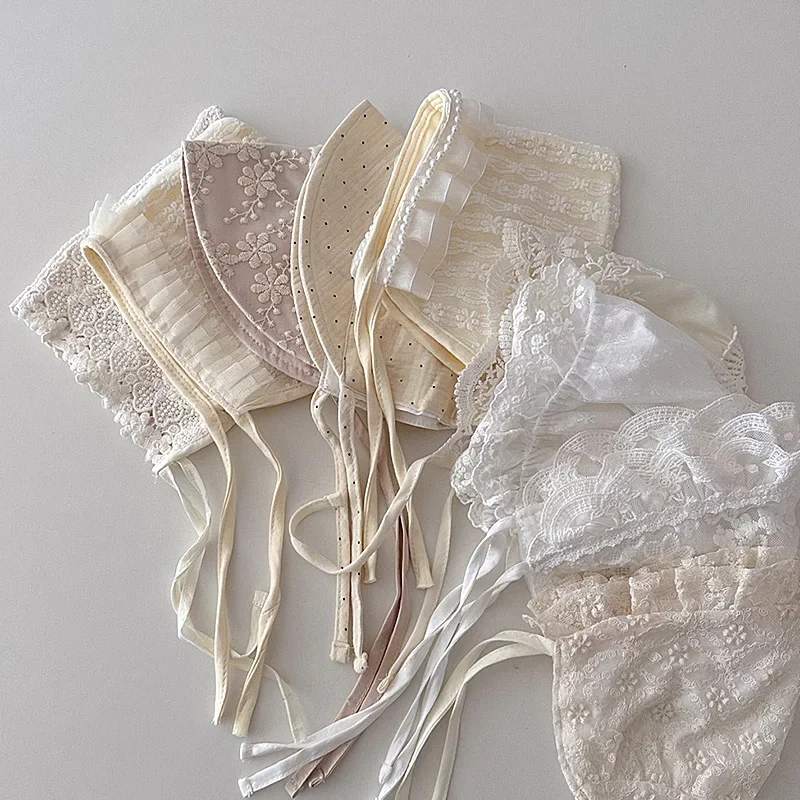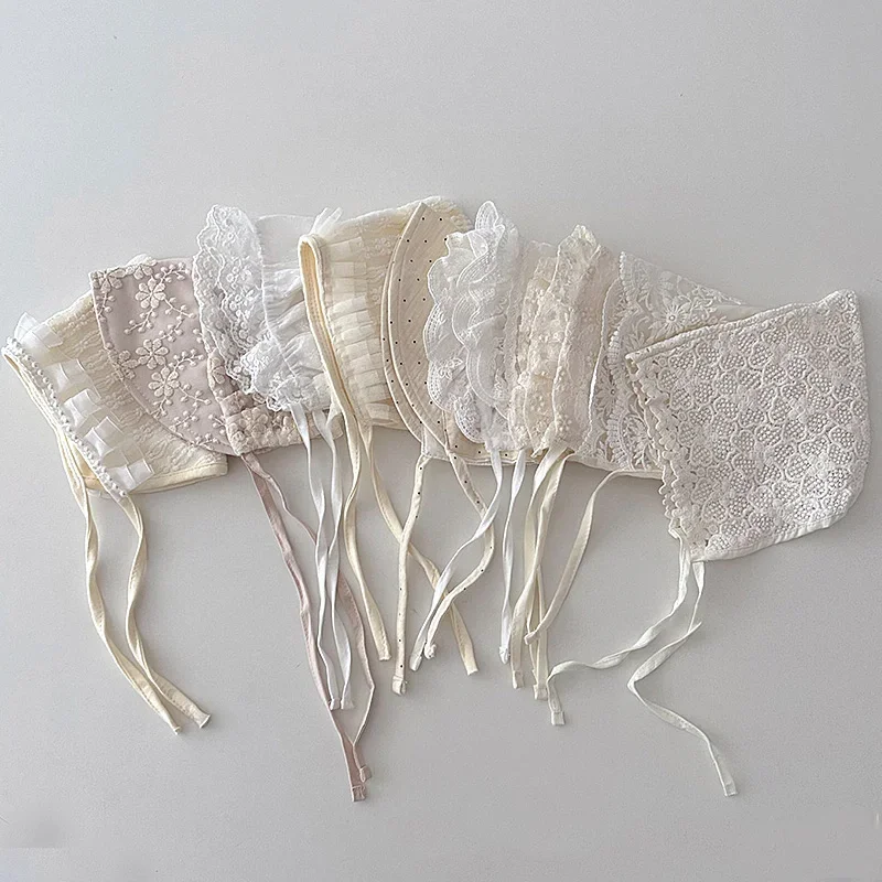 Nouveau bébé Bonnet dentelle nouveau-né fille baptême chapeau pour 0-6 mois filles coton été infantile dentelle fleur maille chapeau broderie Court Cap