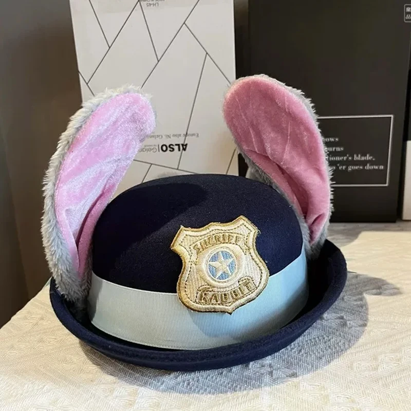 Nouveau Chapeau de shérif à oreilles de lapin pliable Disney Zootopia 2 c| Accessoire de cosplay de film| Chapeaux de Noël/Anime Lapin de la Police