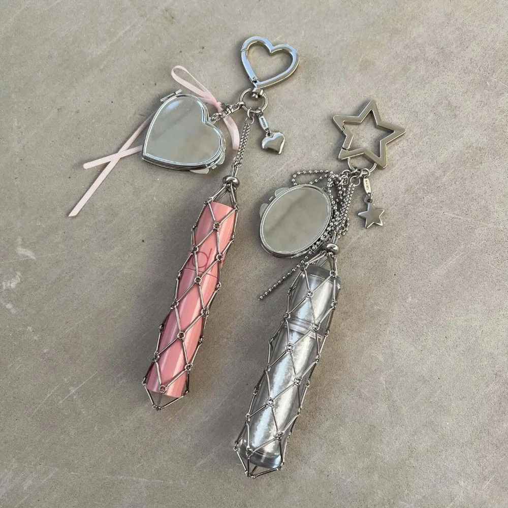 Nouveau filet en métal poche rouge à lèvres sac porte-clés Portable pochette de maquillage baume à lèvres sac porte-clés rouges à lèvres housse de protection miroir