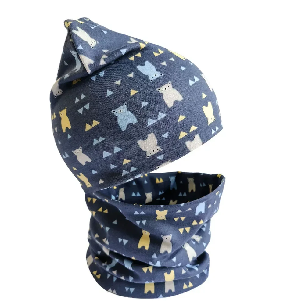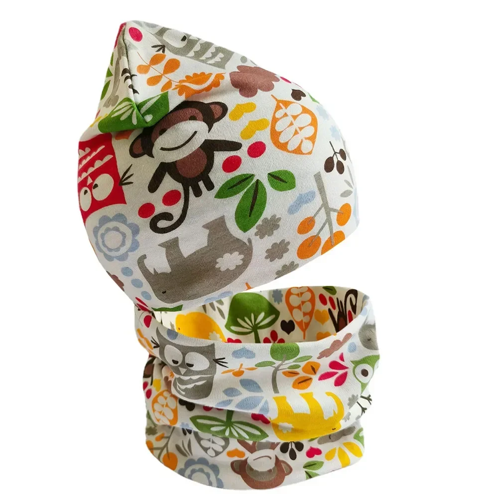 Ensemble écharpe et chapeau pour enfants, dinosaure de dessin animé, couvre-tête de bébé, col chaud de printemps, ensemble de bonnets en coton pour enfants, nouvelle collection hiver