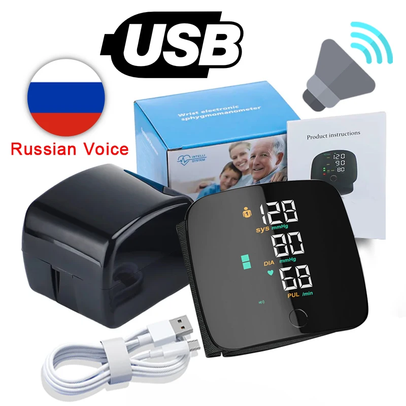 Nouveau LED poignet tensiomètre Rechargeable anglais diffusion vocale sphygmomanomètre tonomètre BP moniteur