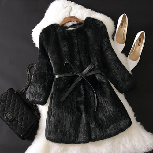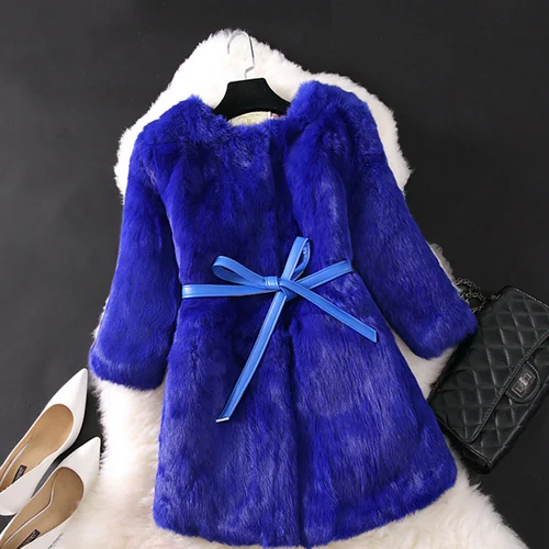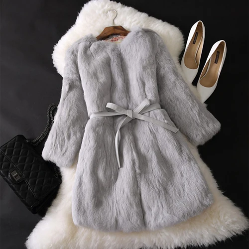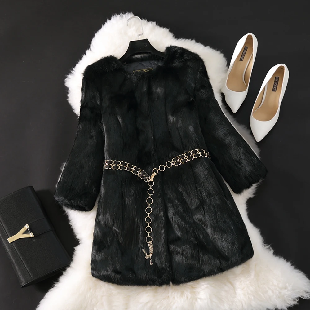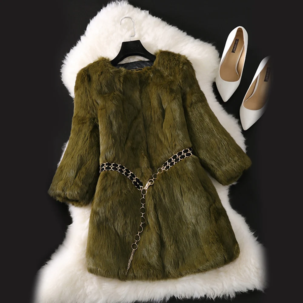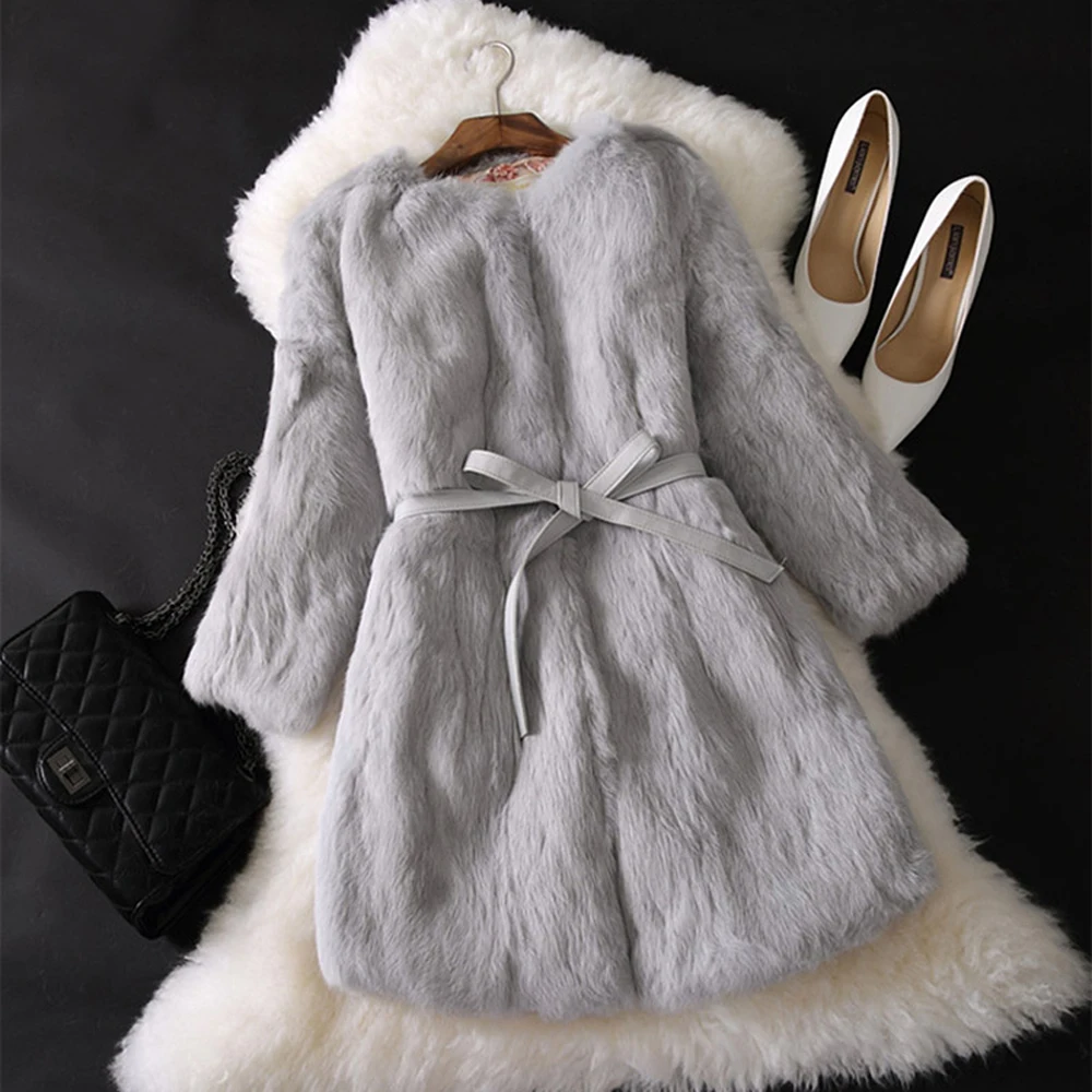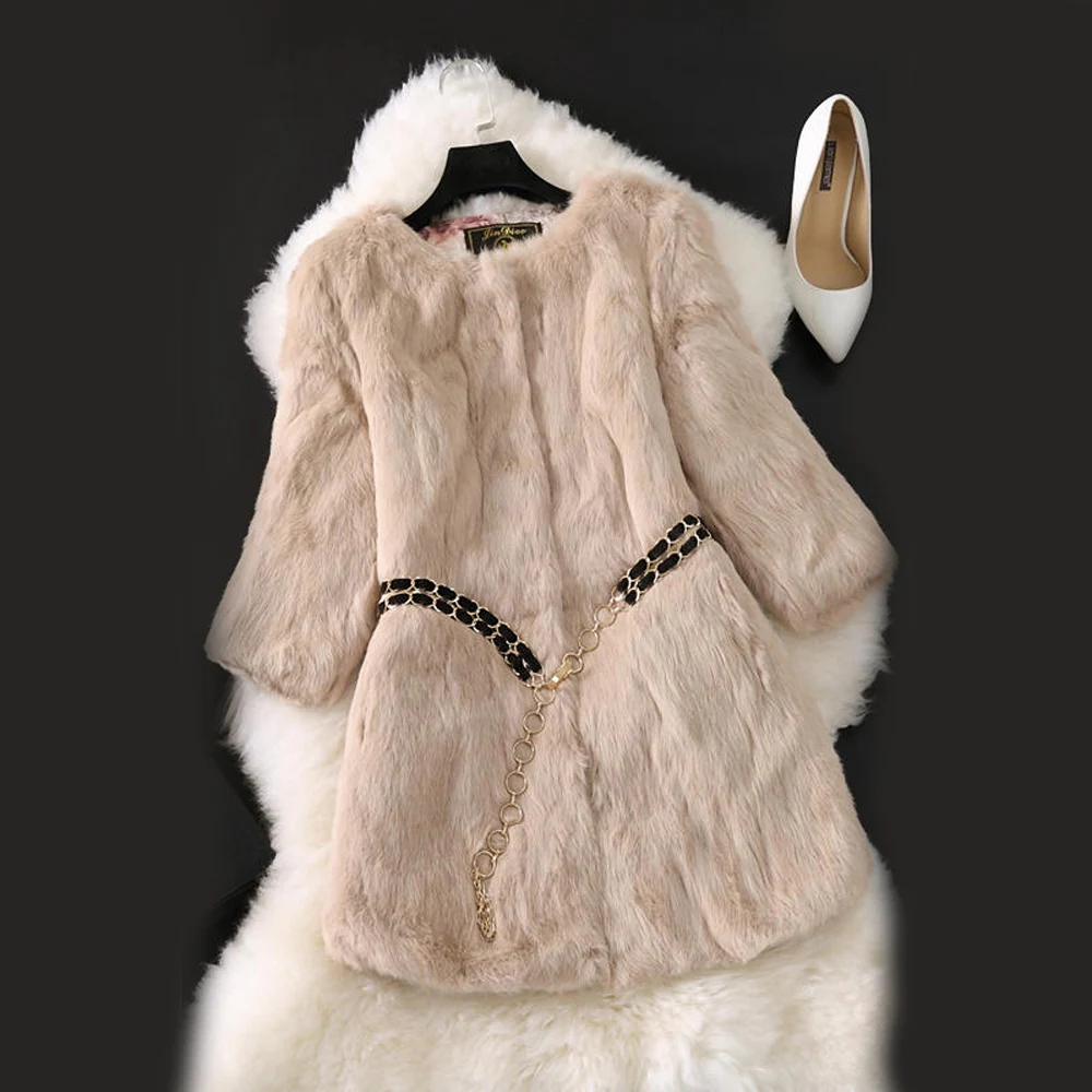 Nouveau manteau Long en vraie fourrure de lapin naturel hiver veste de fourrure de lapin véritable femme coréenne trois quarts manches doux manteaux de fourrure véritable
