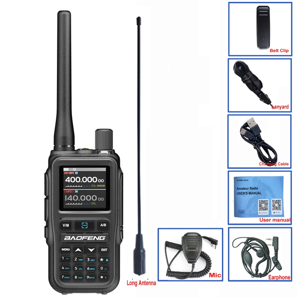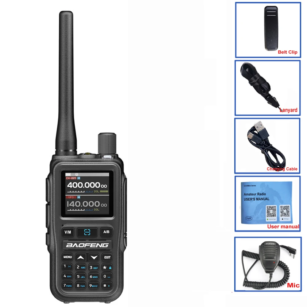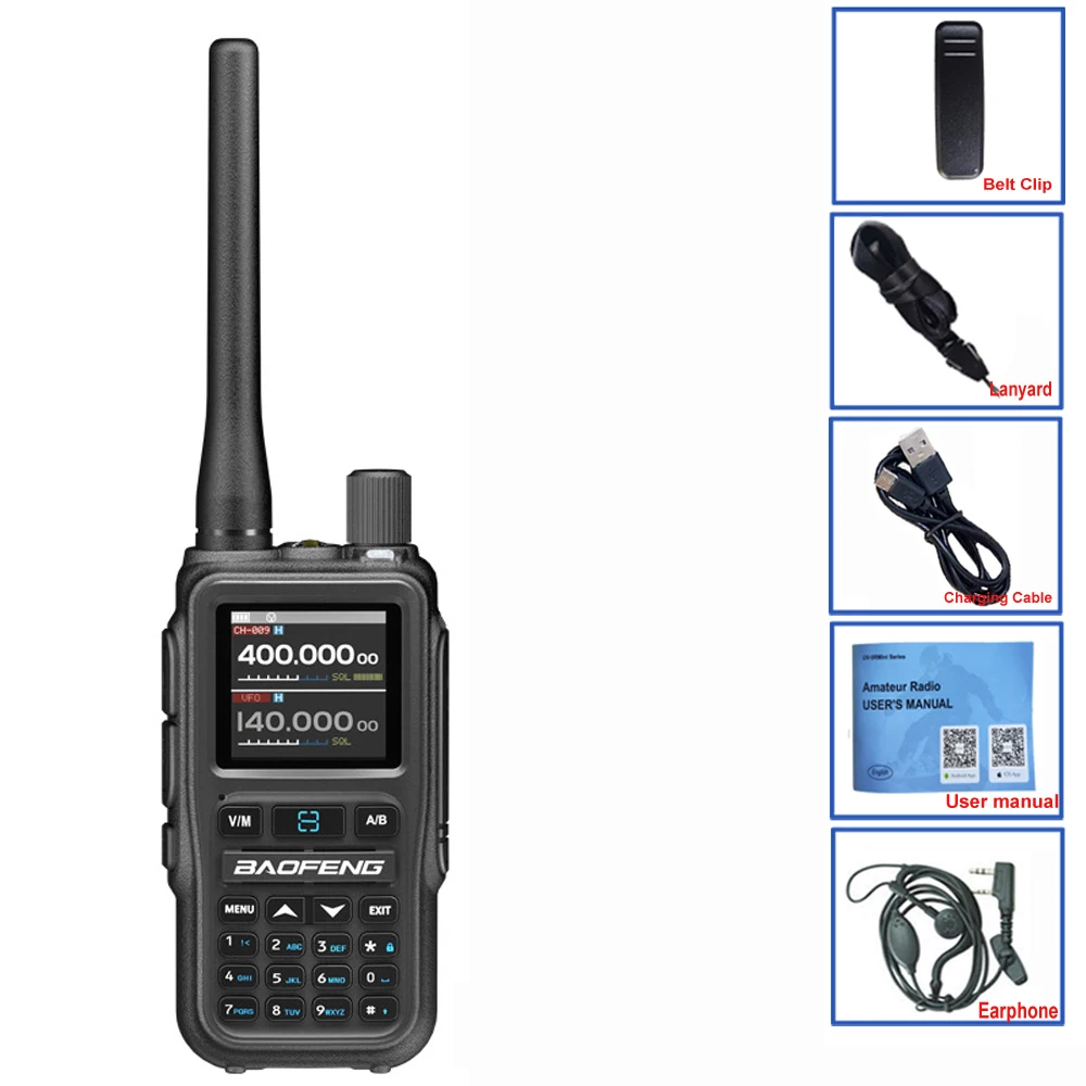 Nouveau noir Baofeng UV-5R Mini double bande double PTT talkie-walkie 5RMINI bande d'air RX 5W Compact VOX FM Amateur Radio Type-C chargeur