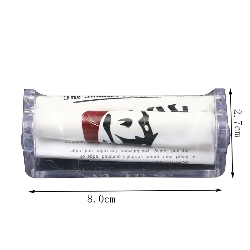 Nom du produit : rouleau à cigarettes transparent en acrylique. Taille du produit : 8,0 cm x 2,7 cm. Taille de la bote unique : pour 110 spécifications, 17*13*5 cm ; pour 70 spécifications, 16*8.5*5.5 cmLargeur du produit : 8,0 cm*2.7 cmPoids individuel : 25 g