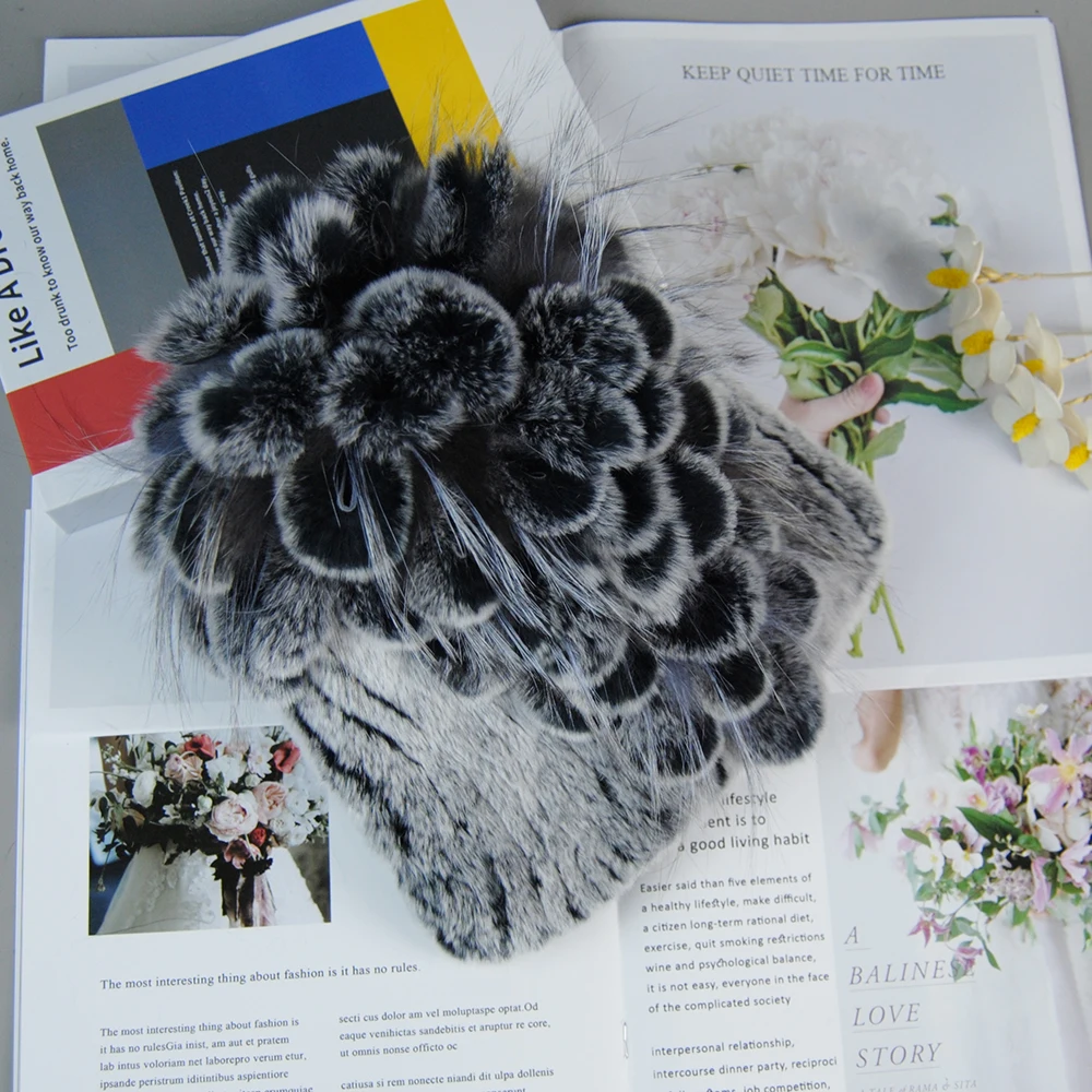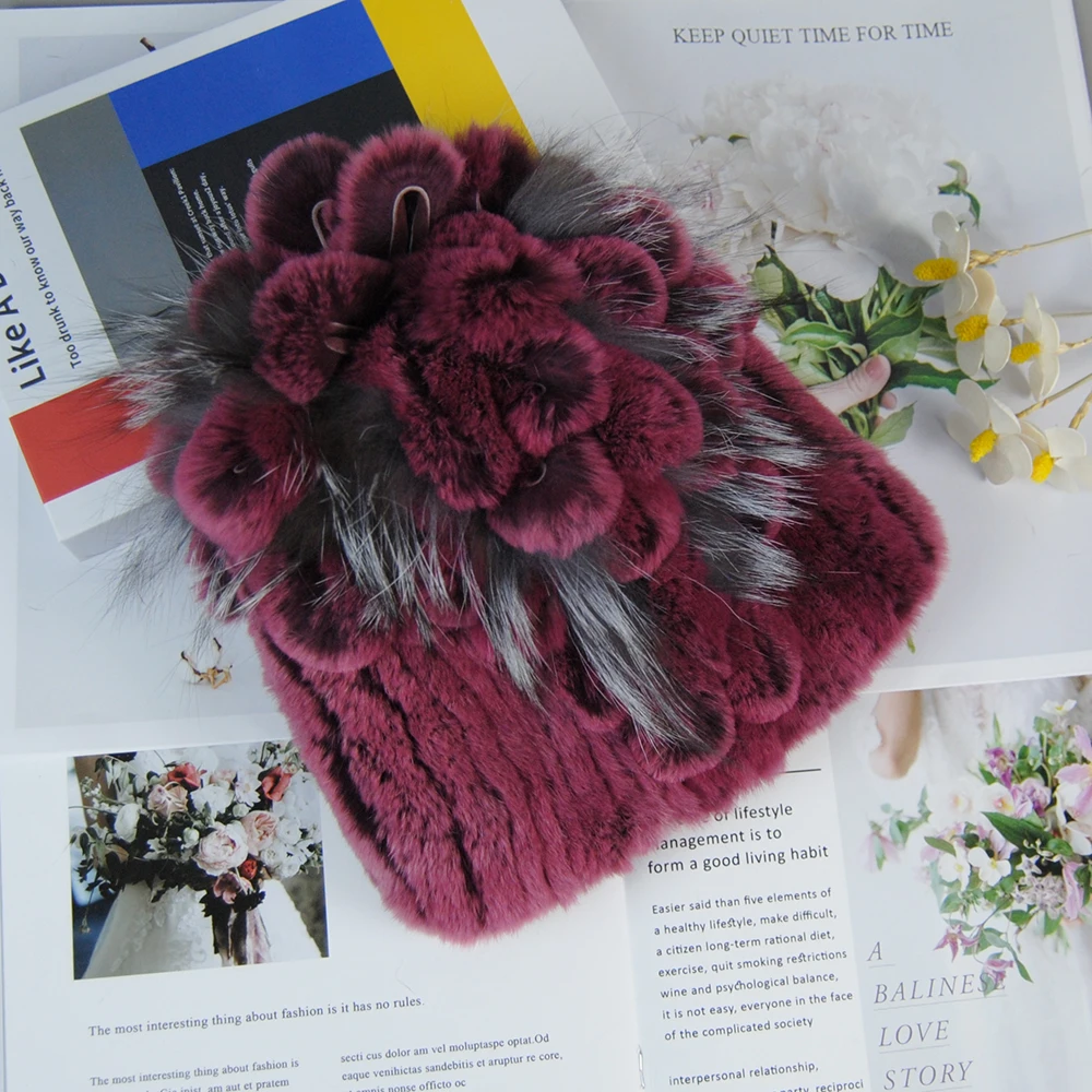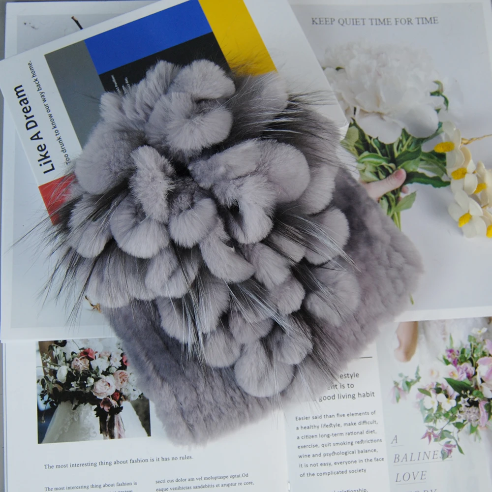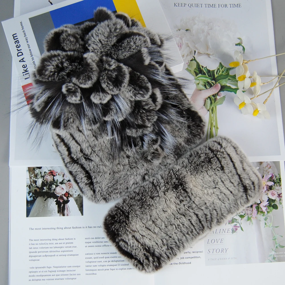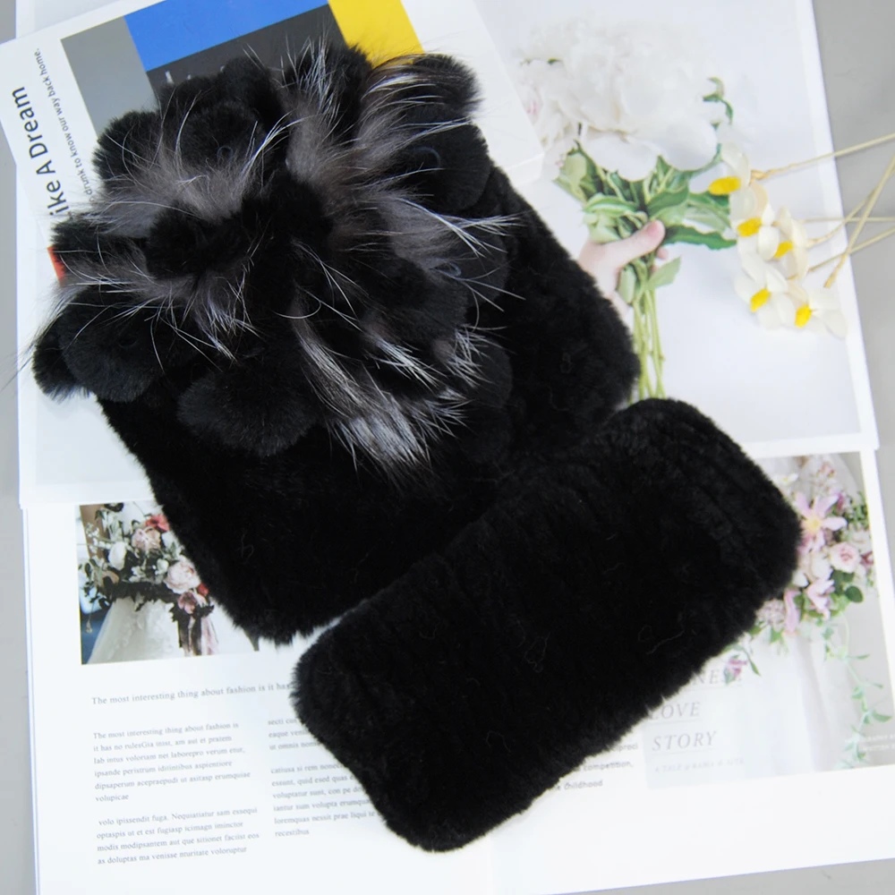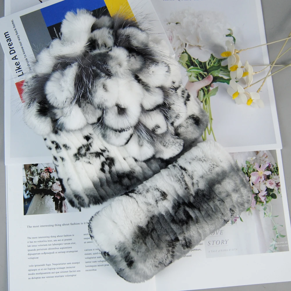 Nouveau Style dame tricot fourrure chapeaux silencieux 2 pièces femmes chaud Rex lapin fourrure chapeau écharpe ensembles hiver naturel Rex lapin fourrure casquette foulards