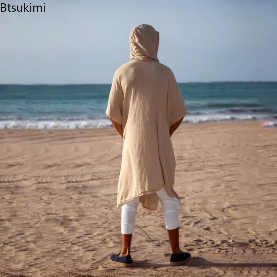 Cardigans mi-long d'été pour hommes, amples, décontractés, Protection solaire, vêtements de plage, Style vacances, châle, manteau Long à capuche, 2025, 2023