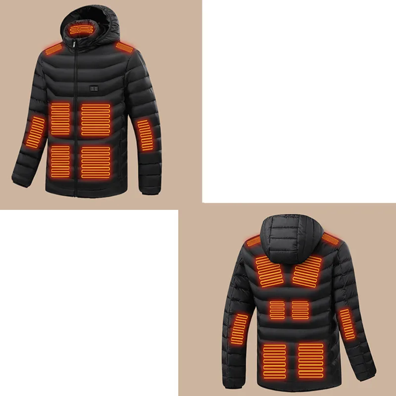 Nouveaux hommes hiver 15 zones chauffage Intelligent à capuche coton veste polyvalent double contrôle chauffage électrique chaud manteau (sans batterie externe)