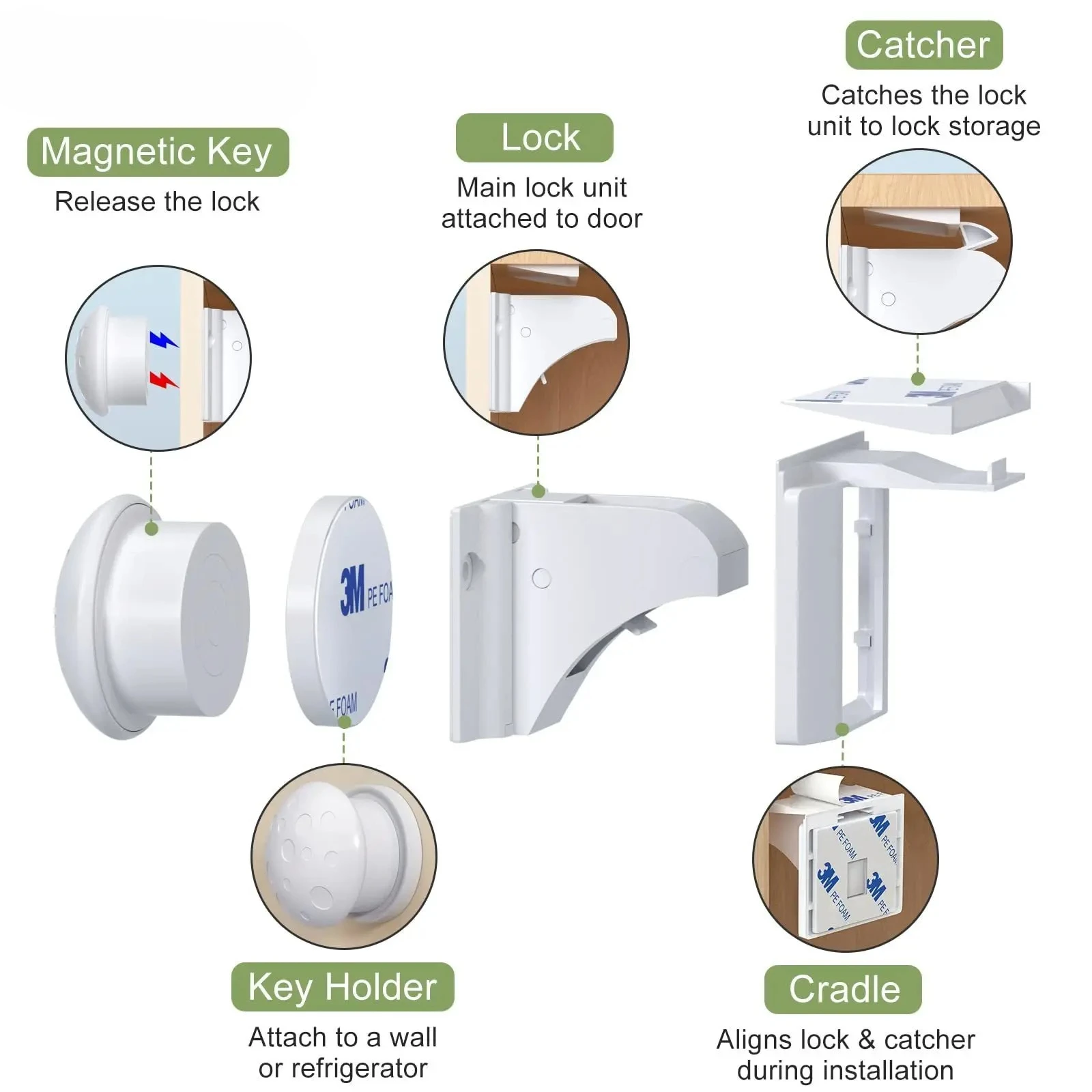 Auto-adhésifs et vis Les verrous magnétiques peuvent être montés par adhésif ou renforcés par vis. L'installation à vis offre une double sécurité pour améliorer la protection, ce qui en fait le verrou de protection de sécurité idéal s'il y a des adultes souffrant de handicaps d'apprentissage ou des enfants sauvages à la maison.