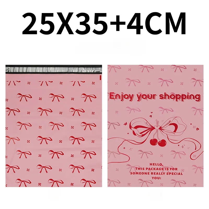 Sacs Express roses, sac de livraison avec nœud papillon mignon, enveloppes de chaussures d'emballage, pochette de courrier auto-adhésive PE, sacs de rangement pour courrier