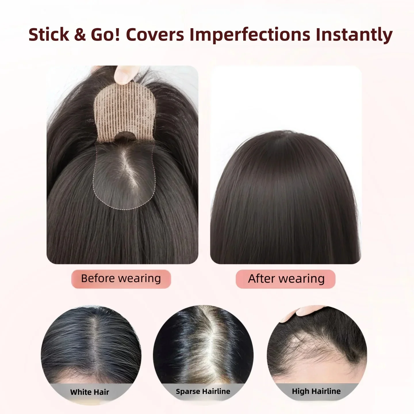 Nouvelle couverture frontale sans couture sans Clip Toppers cheveux humains frange frange pâte magique cheveux Toppers pour les femmes couverture cheveux étassés