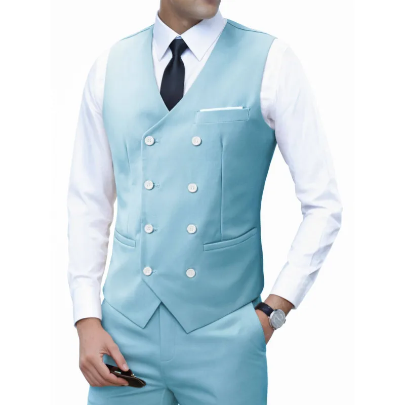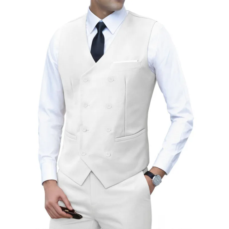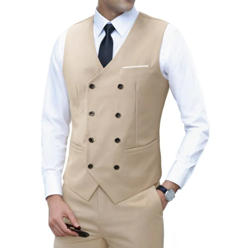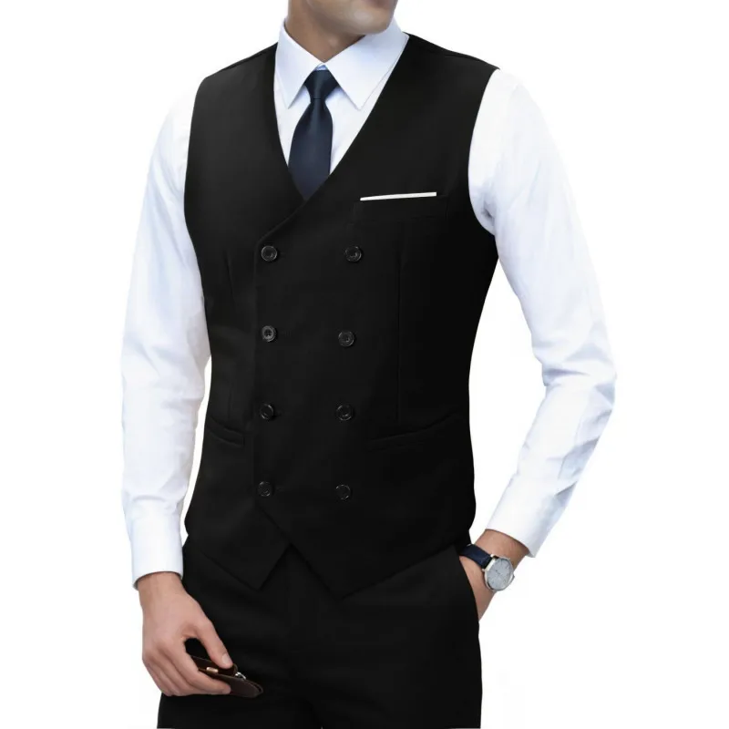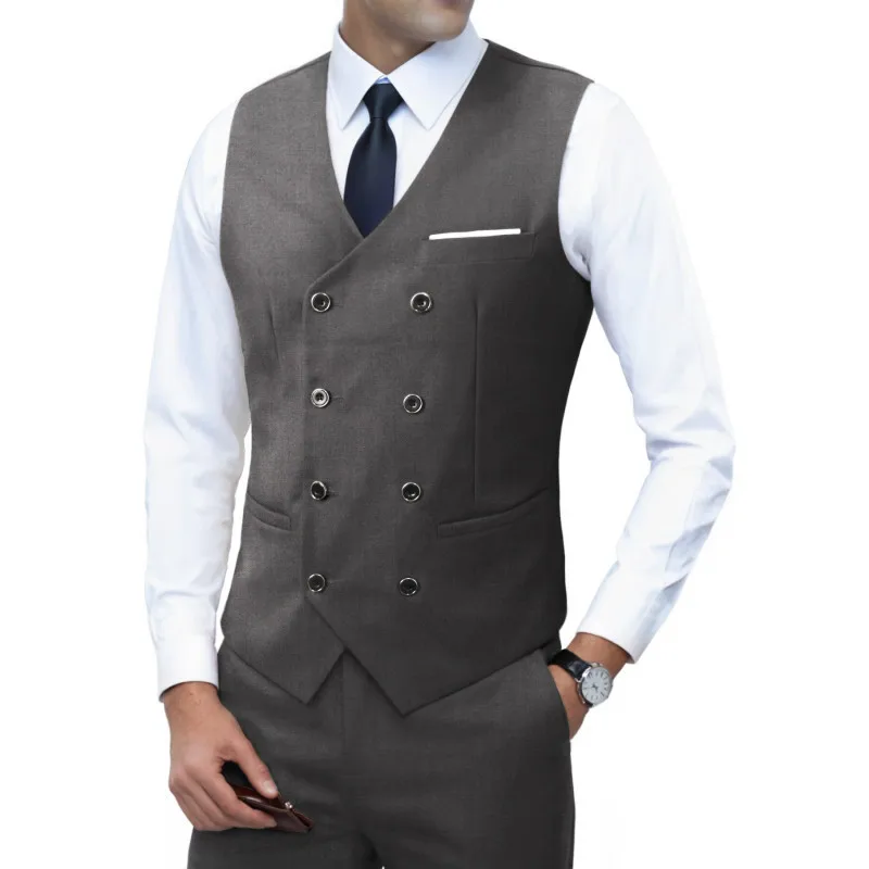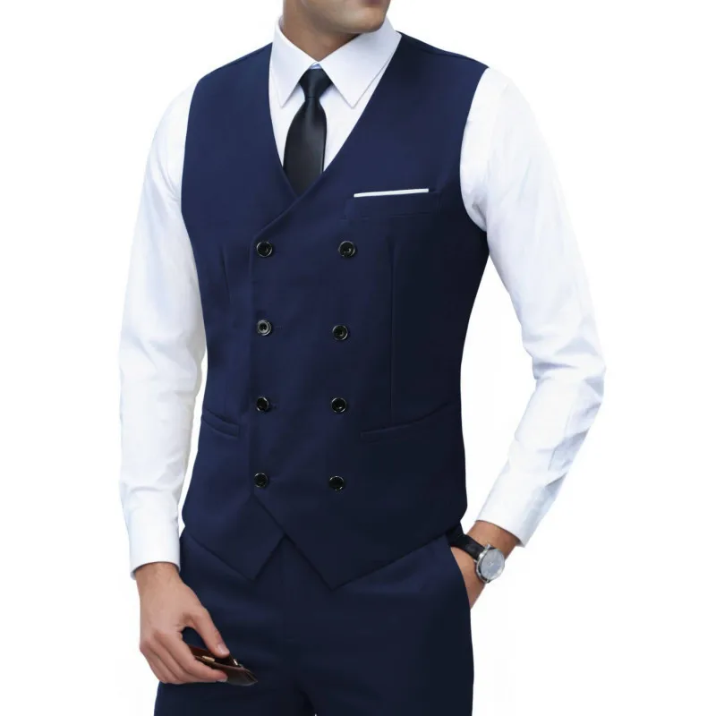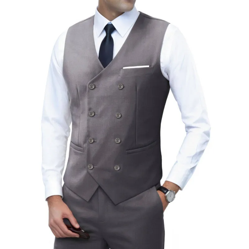Nouvelle marque robe gilets pour hommes décontracté coupe ajustée hommes costume Gilet Double boutonnage Gilet Homme formel affaires veste