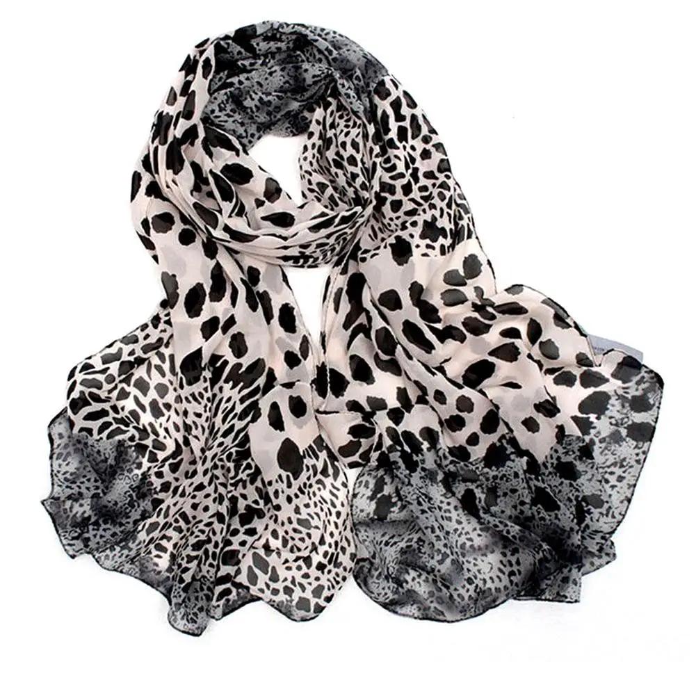 Nouvelle mode Noble femmes longue enveloppement doux dame châle soie mousseline de soie foulards imprimé léopard châle tout-match dame écharpe douce