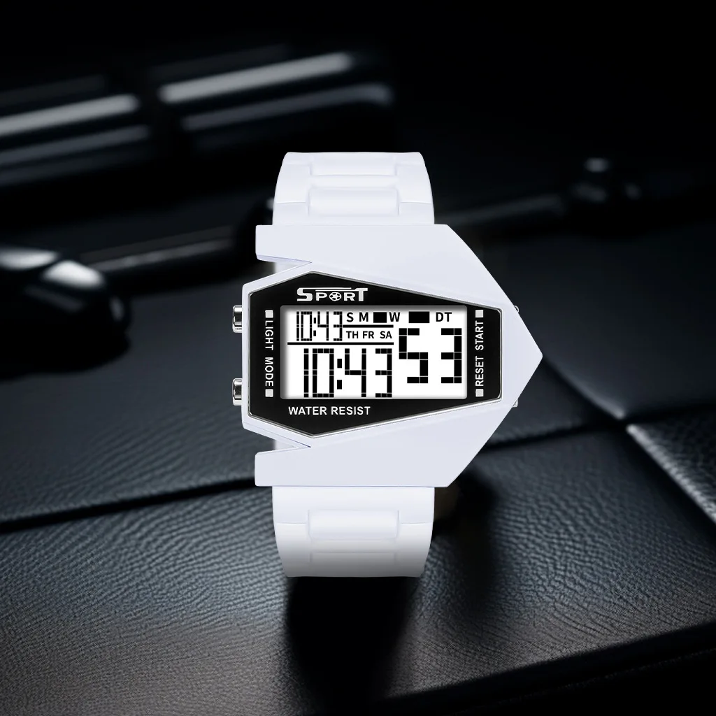 --Conception de montre numérique : design de cadran de sport à la mode pour hommes/femmes/étudiants/enfants/enfants, perspectives de style sportif.Grand cadran et chiffres avec la lumière, affichent l'heure claire dans l'obscurité.Utilisez la lampe EL, appuyez sur le bouton « LIGHT » pour voir l'heure clairement dans la lumière.