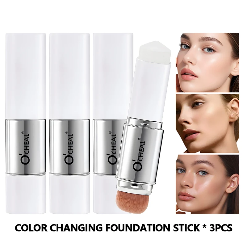 O'CHEAL bâton de fond de teint à changement de température couverture mate imperfections pores à double tête avec brosse imperméable durable hydratant couverture du visage crème de maquillage