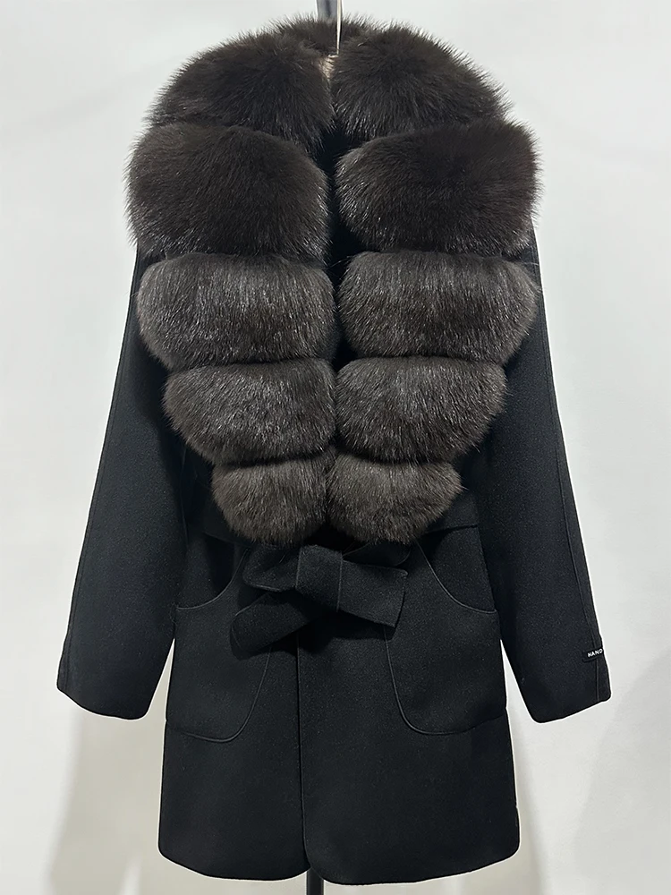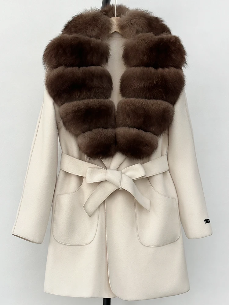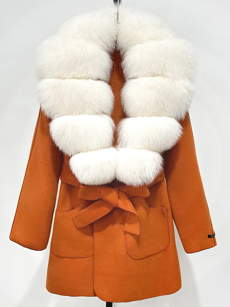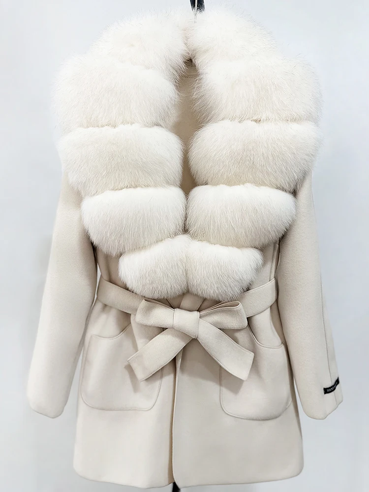 OFTBUY nouveau automne haut d'hiver vêtements 100% laine manteau femmes mode réel col de fourrure de renard laine veste manteau de fourrure naturelle femme