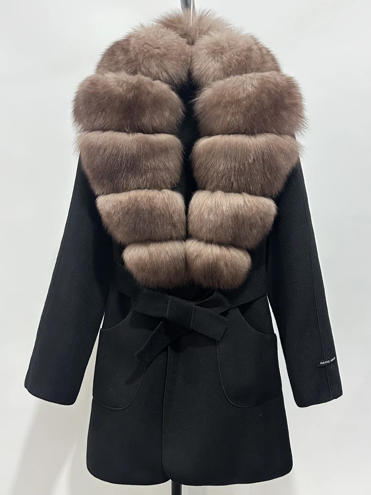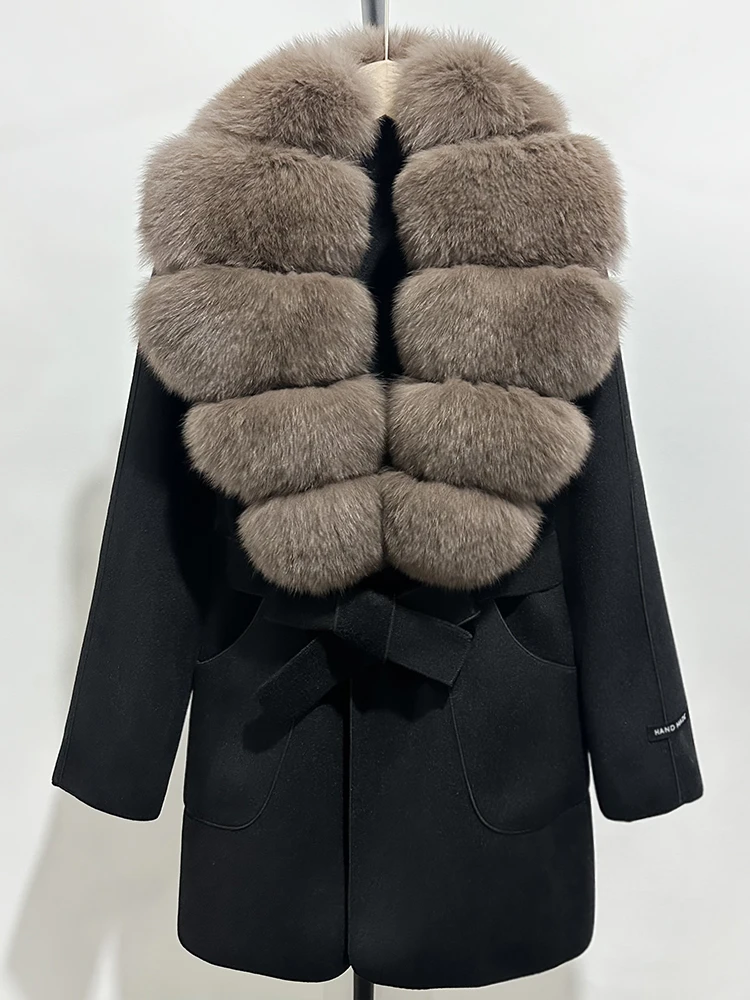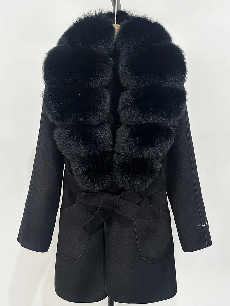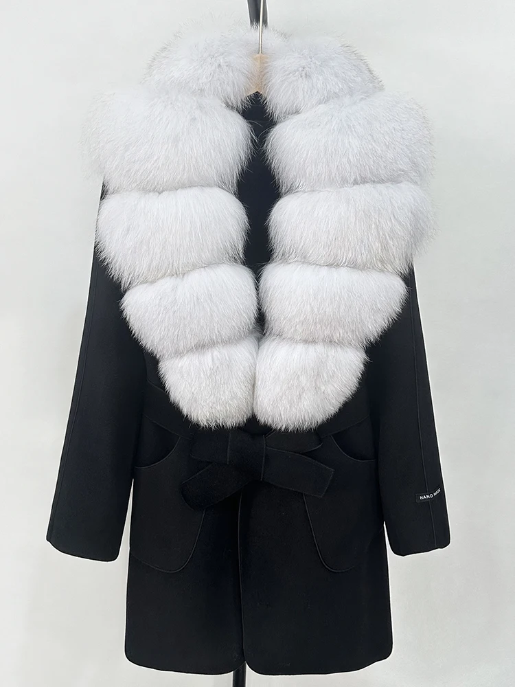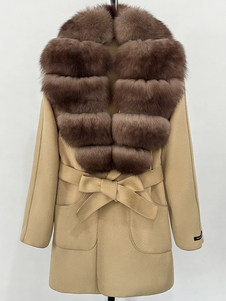 OFTBUY nouveau automne haut d'hiver vêtements 100% laine manteau femmes mode réel col de fourrure de renard laine veste manteau de fourrure naturelle femme