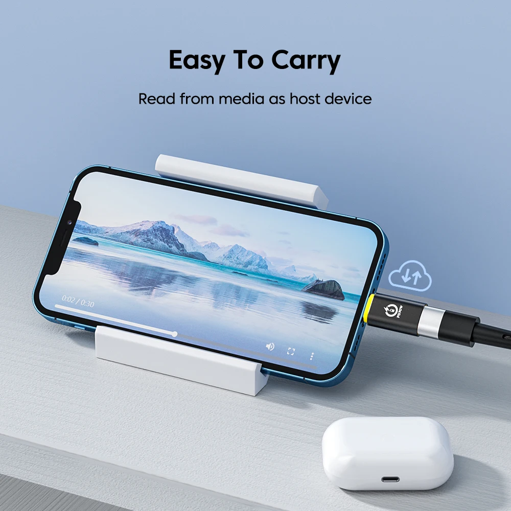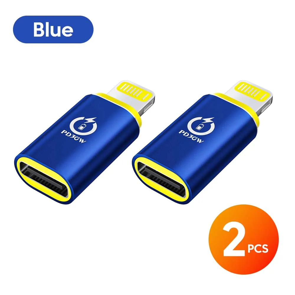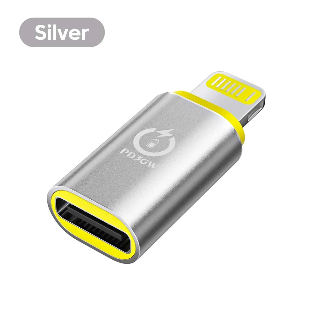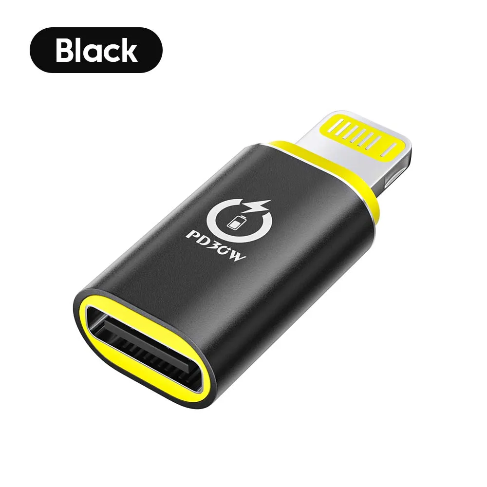 Descriptif : Nom du produit : adaptateur PD30W iOS vers type-c femelle. Couleur: noir/argent/bleu/Orange Matériel: alliage d'aluminium + ABS Interface : iOS vers type-c femelle Fonction : chargement + transmission de données. Attention : non OTG, non équipé de la fonction OTG, impossible de lire la clé USB.
