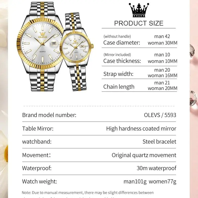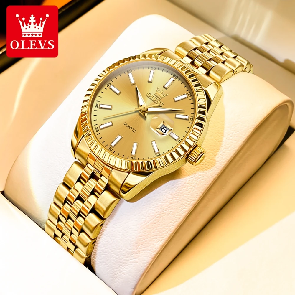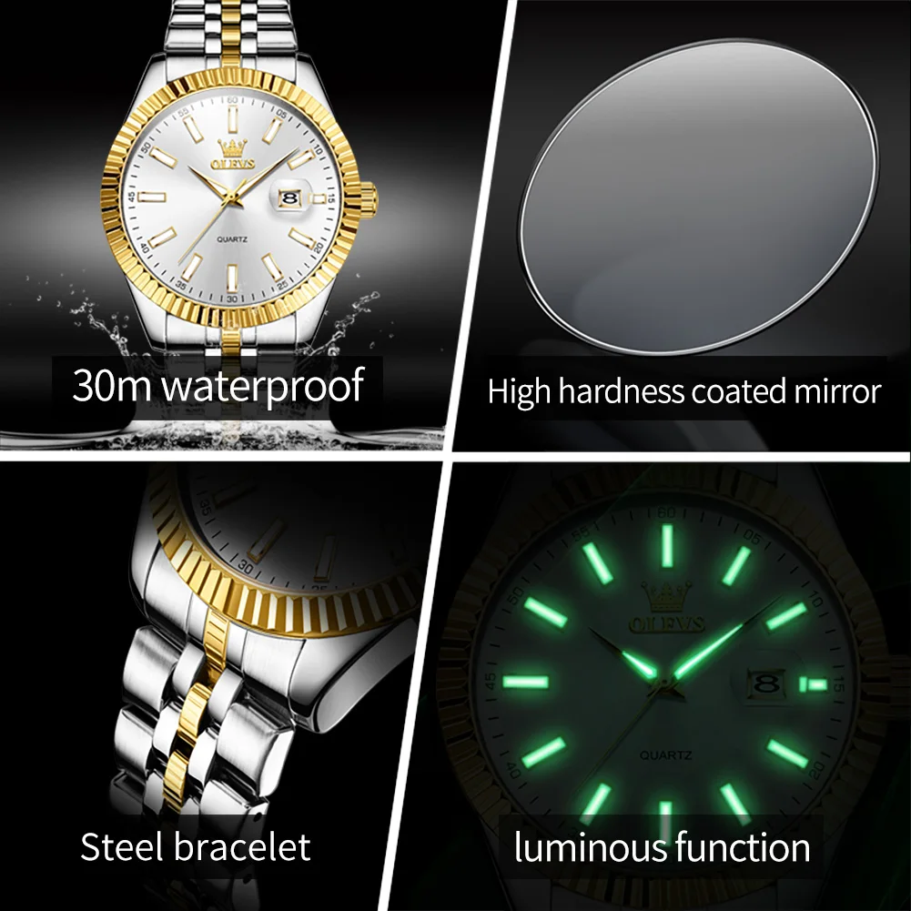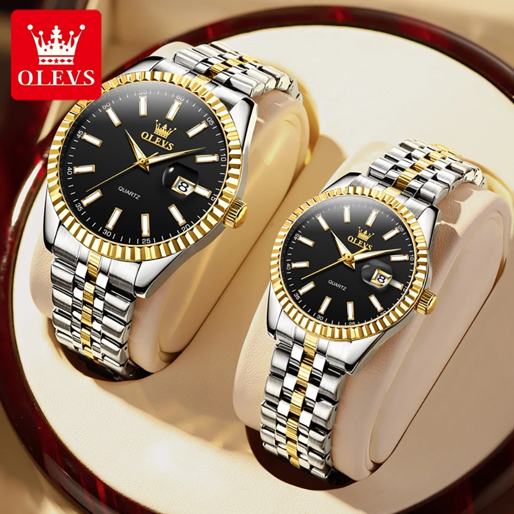 OLEVS 5593 Couple montre mode affaires étanche en acier inoxydable montre marque de luxe classique Date semaine horloge hommes femmes montre