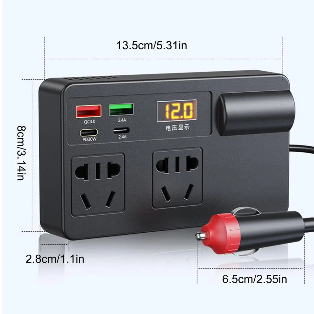 Alimentez vos gadgets en toute sécurité avec notre onduleur de voiture. Convient à l'entrée 12V à 24V DC, il s'adapte facilement à tous les modèles de voitures et de camions, s'adaptant à vos besoins en tension et gardant vos appareils chargés à tout moment.