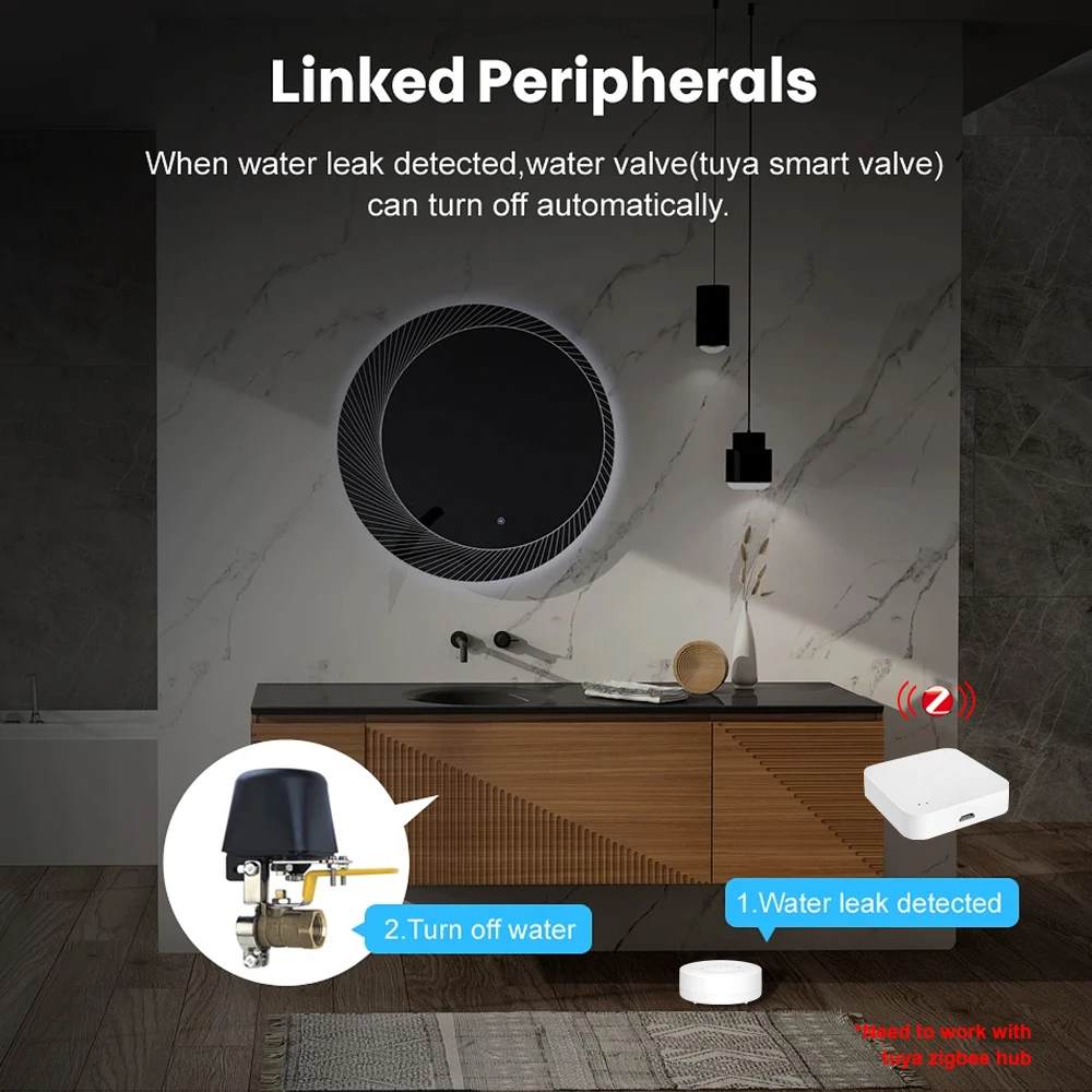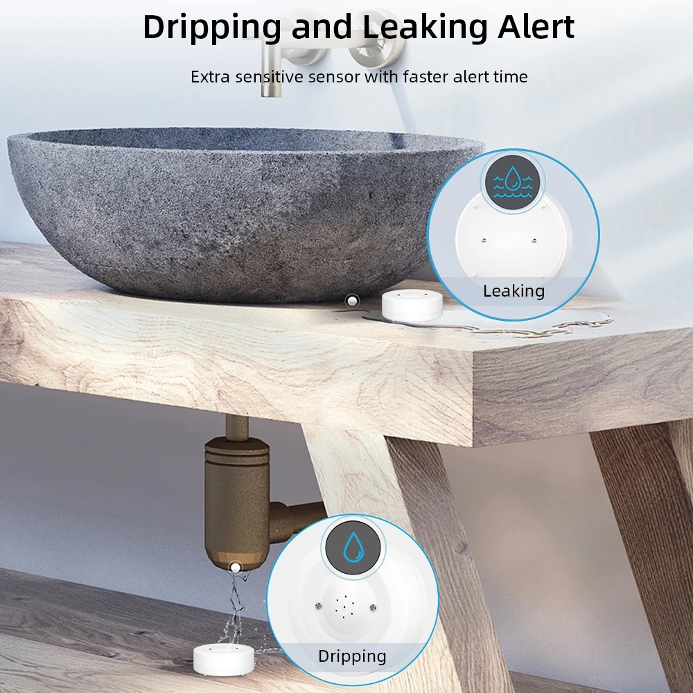 ONENUO Tuya Zigbee capteur de fuite d'eau détecteur de fuite d'inondation avec alarme sonore 80dB et capteur étanche IP55 moniteur à distance