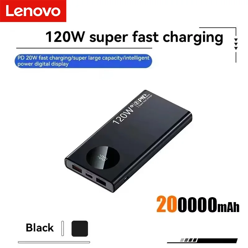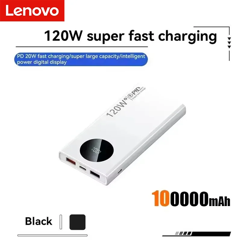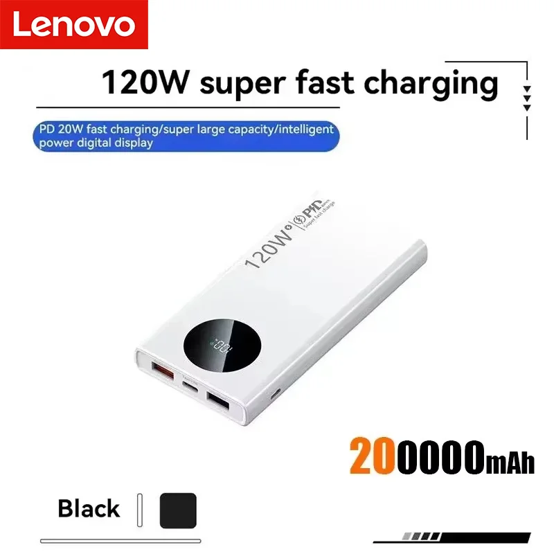 LenovoBatterie Externe Haute Capacité 50000mAh 120W Charge Super Rapide Powerbank Chargeur de Batterie Portable Pour iPhone Samsung