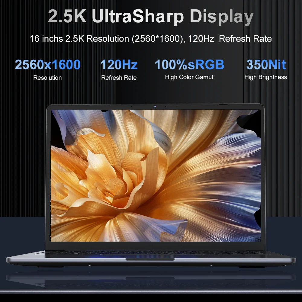 2.Écran : Le grand écran de 16 pouces offre un champ de vision spacieux, idéal pour les utilisateurs qui ont besoin d'une conception professionnelle, de montage vidéo ou de lecture de documents sur un grand écran.La haute résolution de 2560x1600 garantit des images et un texte clairs, tandis que le taux de rafraîchissement de 120 Hz assure une expérience de jeu fluide (compatible avec de nombreux jeux populaires, Genshin Impact, World of Tanks, CSGO, Overwatch, DOTA2, etc.).et expérience multimédia.