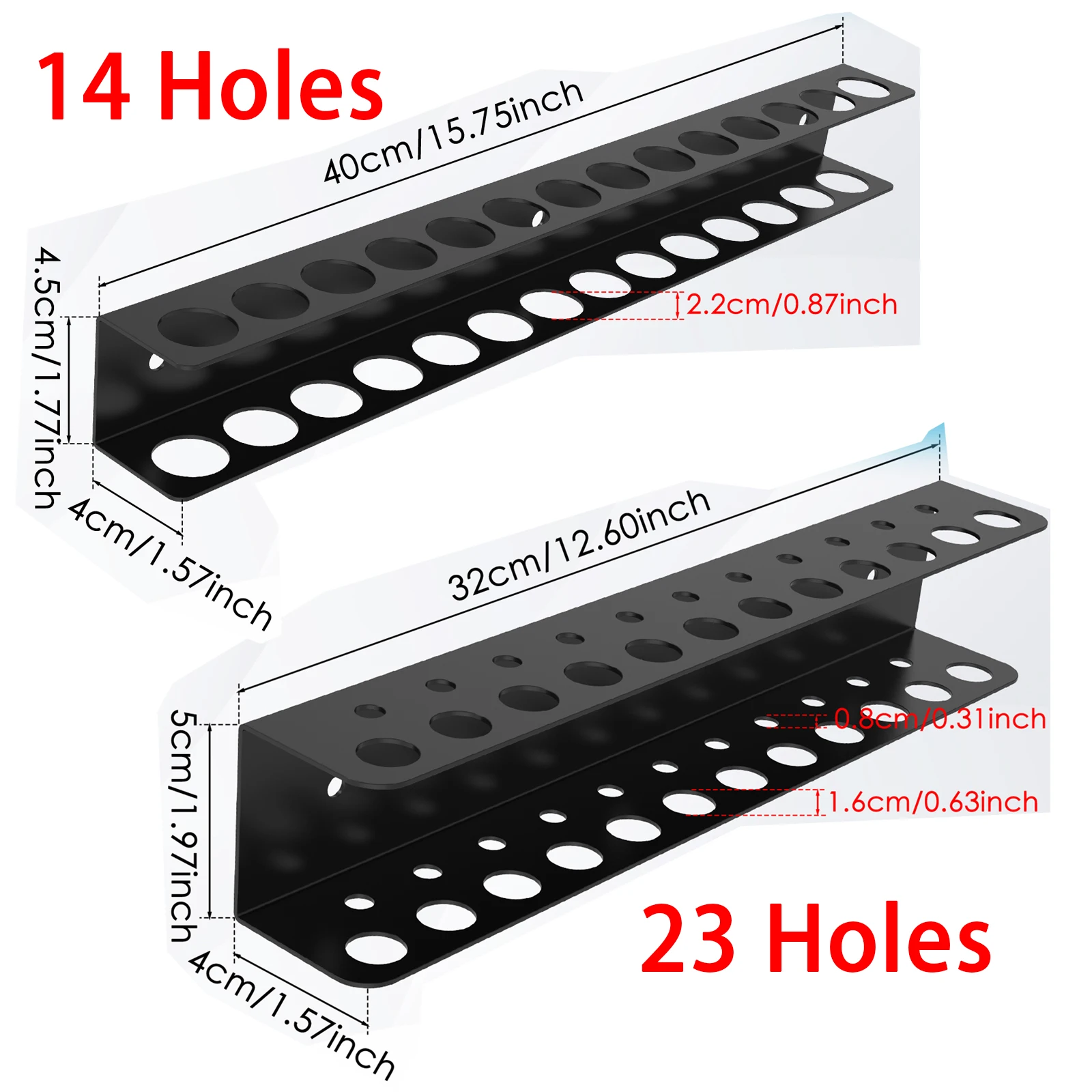 Taille des 14 trous : 40 x 4,5 x 4 cm Diamètre du trou : 2,2 cm