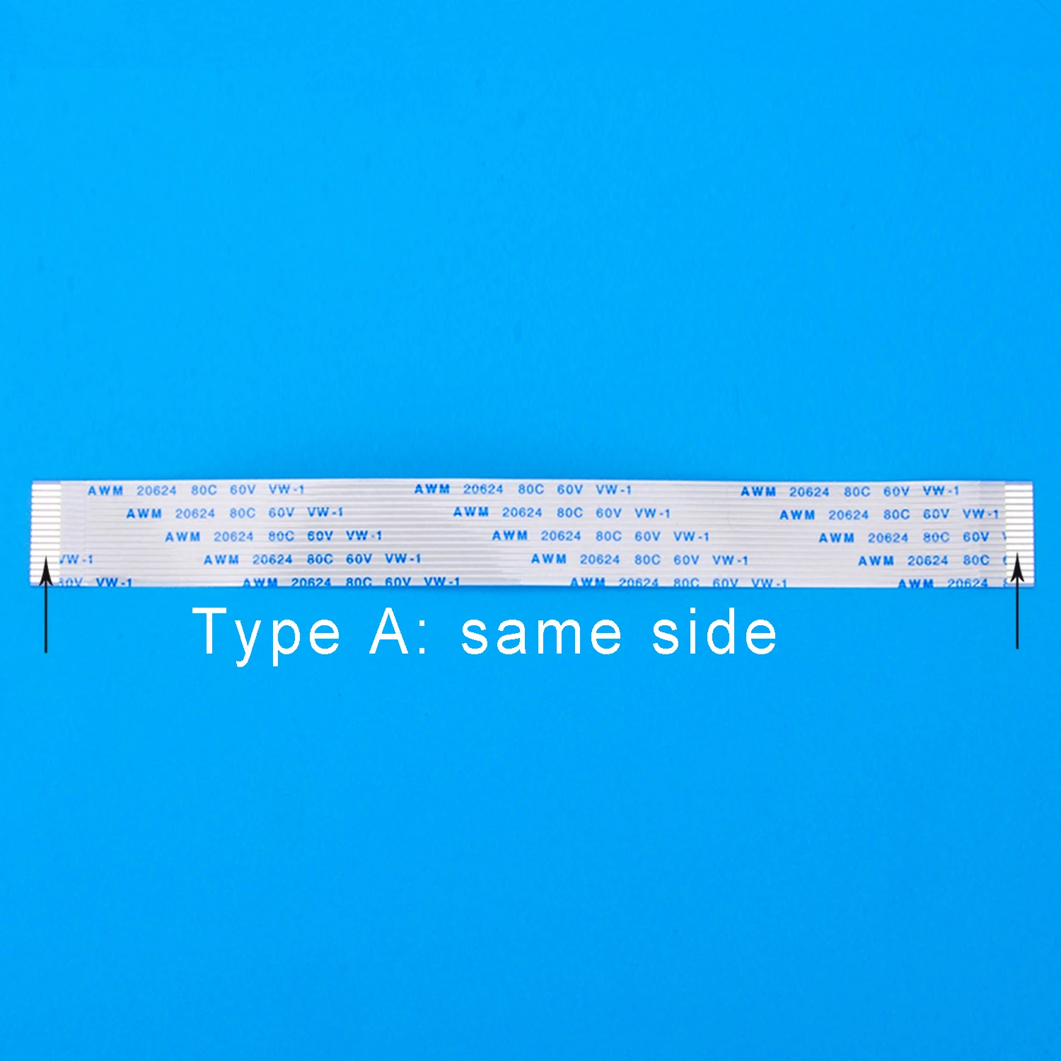 Type A : Les deux extrémités sont du même côté et la plaque de renfort est fixée au ruban isolant.