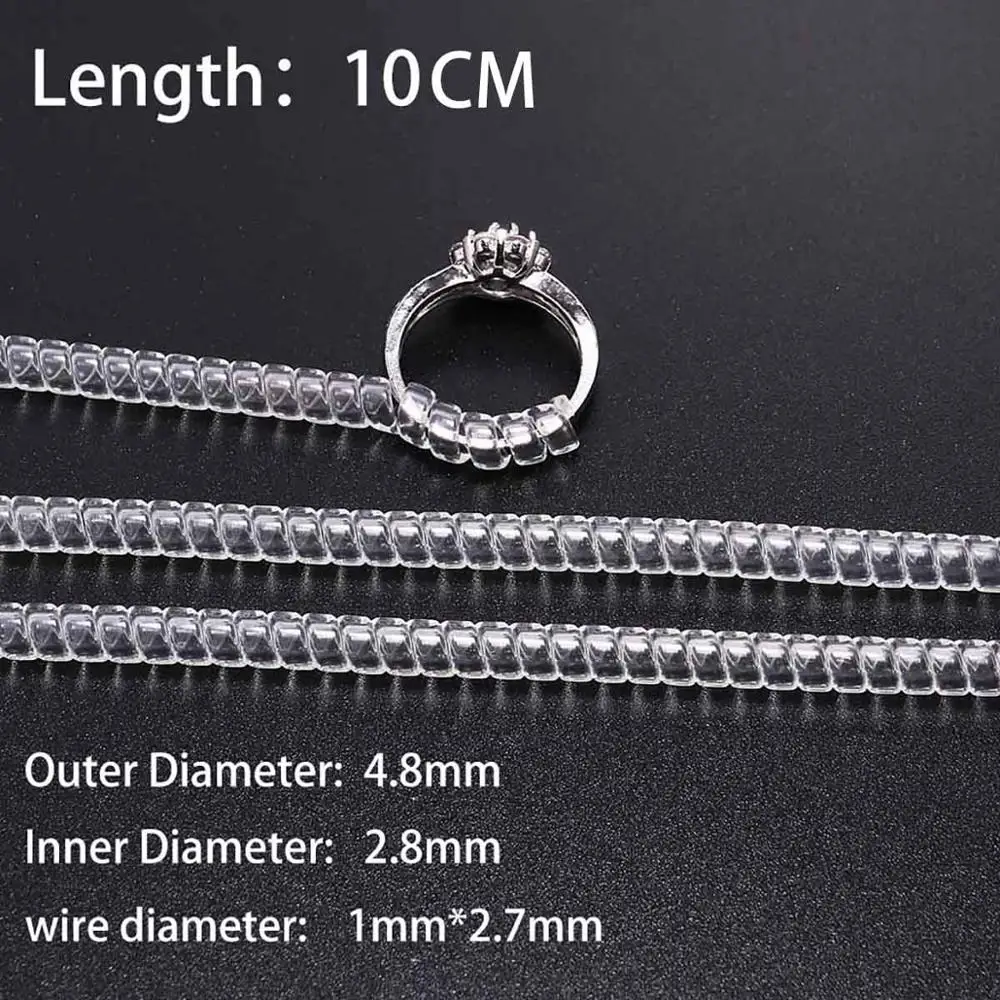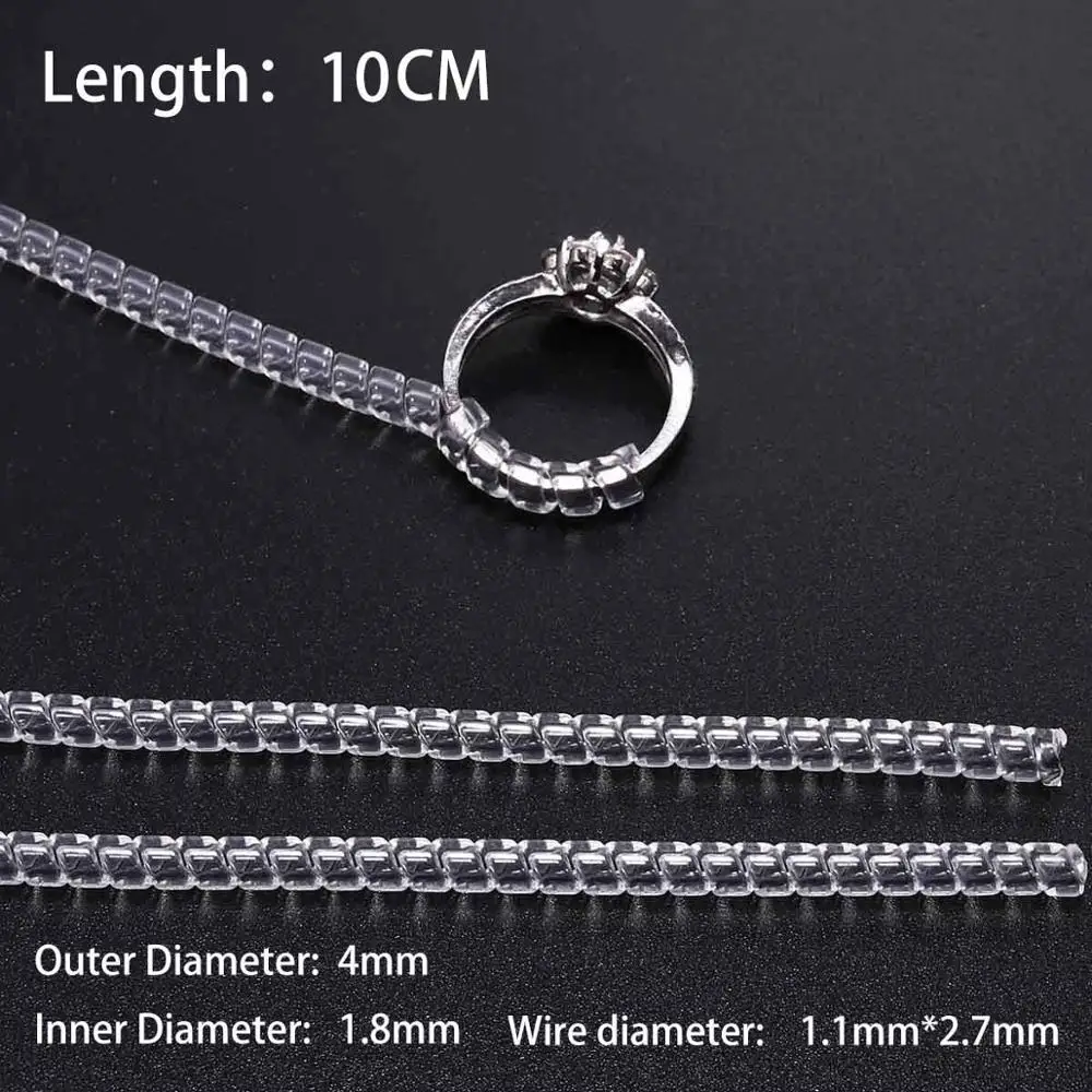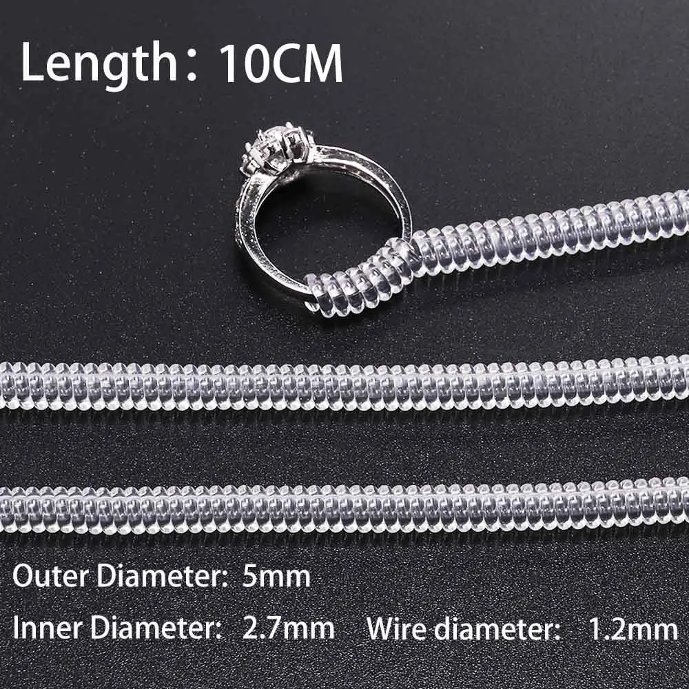 Outils de bague à base de spirale transparente, 4 pièces/lot, bobine de ressort, ajusteur de taille de bague, outil de redimensionnement pour bague de bijoux