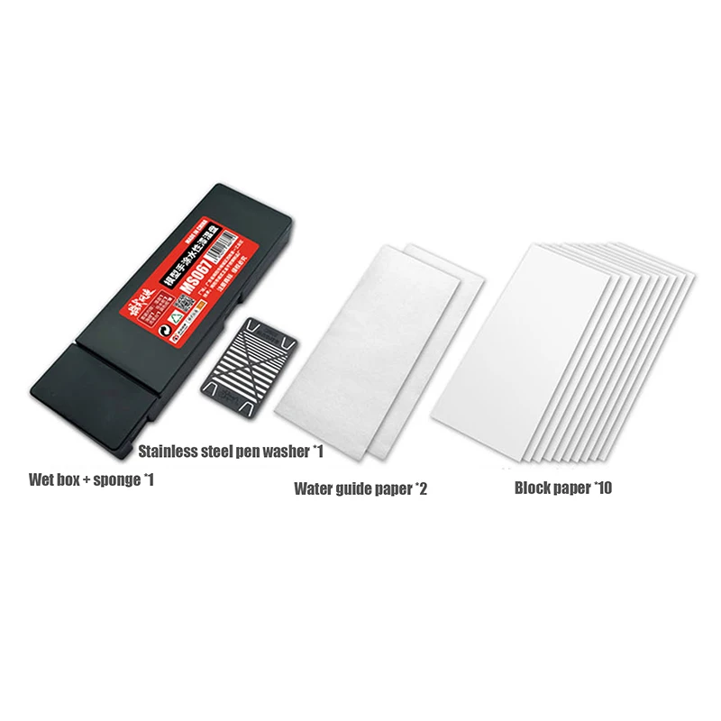 1 * plateau humide + 1 * éponge + 1 * support de lavage pour stylo + 2 * papier de guidage d'eau + 10 * papier frisé ou 10 pièces/sac de papier de guidage d'eau ou 50 pièces/sac de papier frisé ou 50 pièces/sac de papier de diffusion