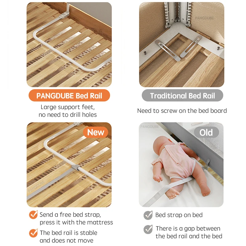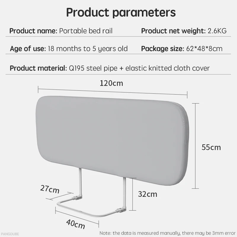PANGDUBE Garde-corps de lit pliable pour enfants Garde-corps de lit avec sac de rangement Barrière portable pour enfants pour la protection du lit pour bébé