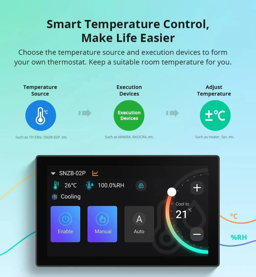 Choisissez la source de température et les dispositifs d'exécution pour former votre propre thermostat.Gardez une température ambiante adaptée à vos besoins.