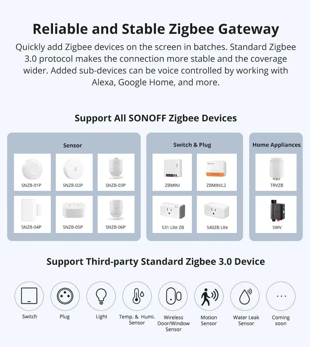 【Panneau de contrôle tout-en-un】 Contrôlez un nombre illimité d'appareils SONOFF, y compris les lumières intelligentes, les caméras, les capteurs de sécurité et les commutateurs, etc. Les futurs appareils SONOFF seront également pris en charge.