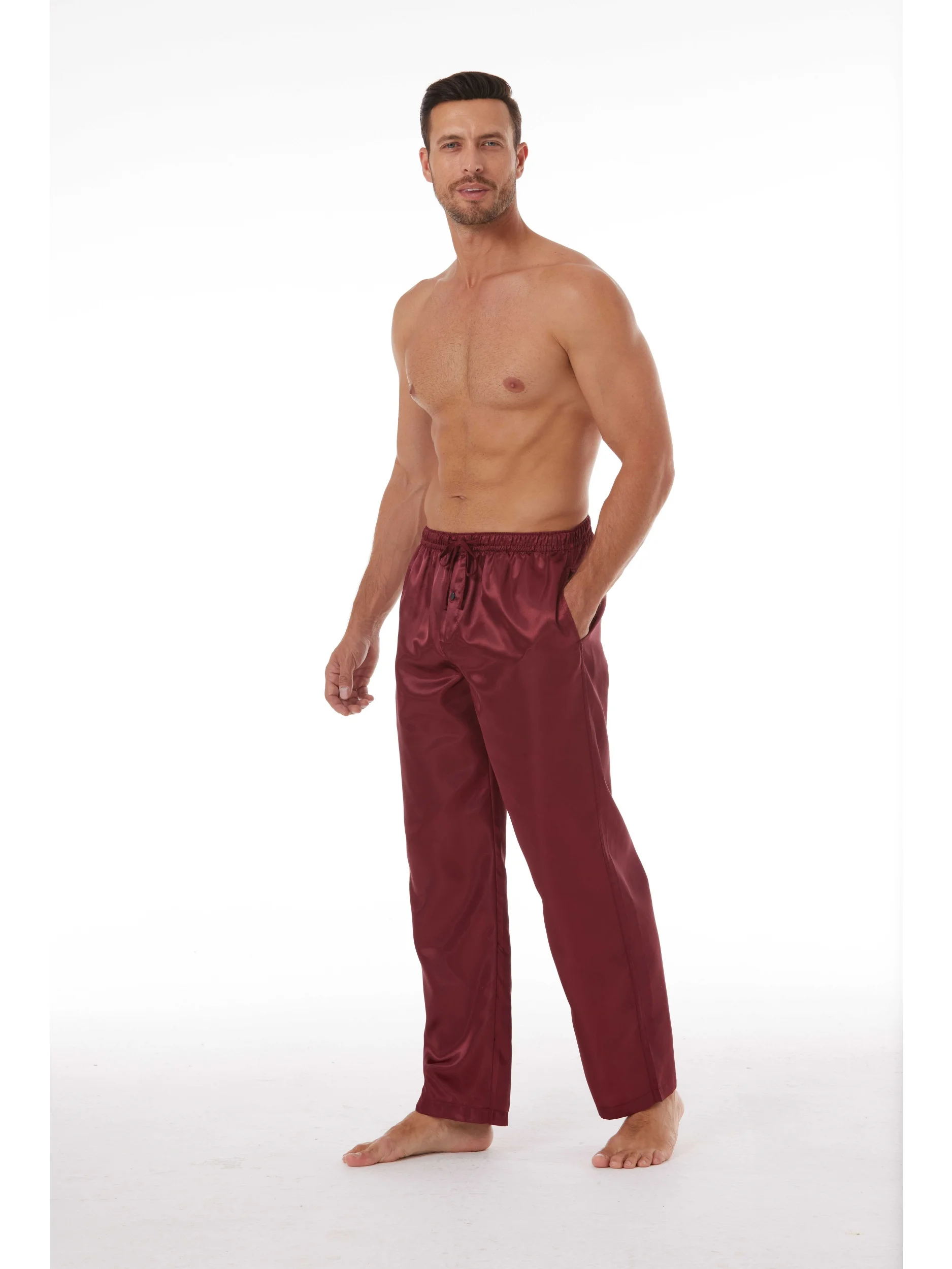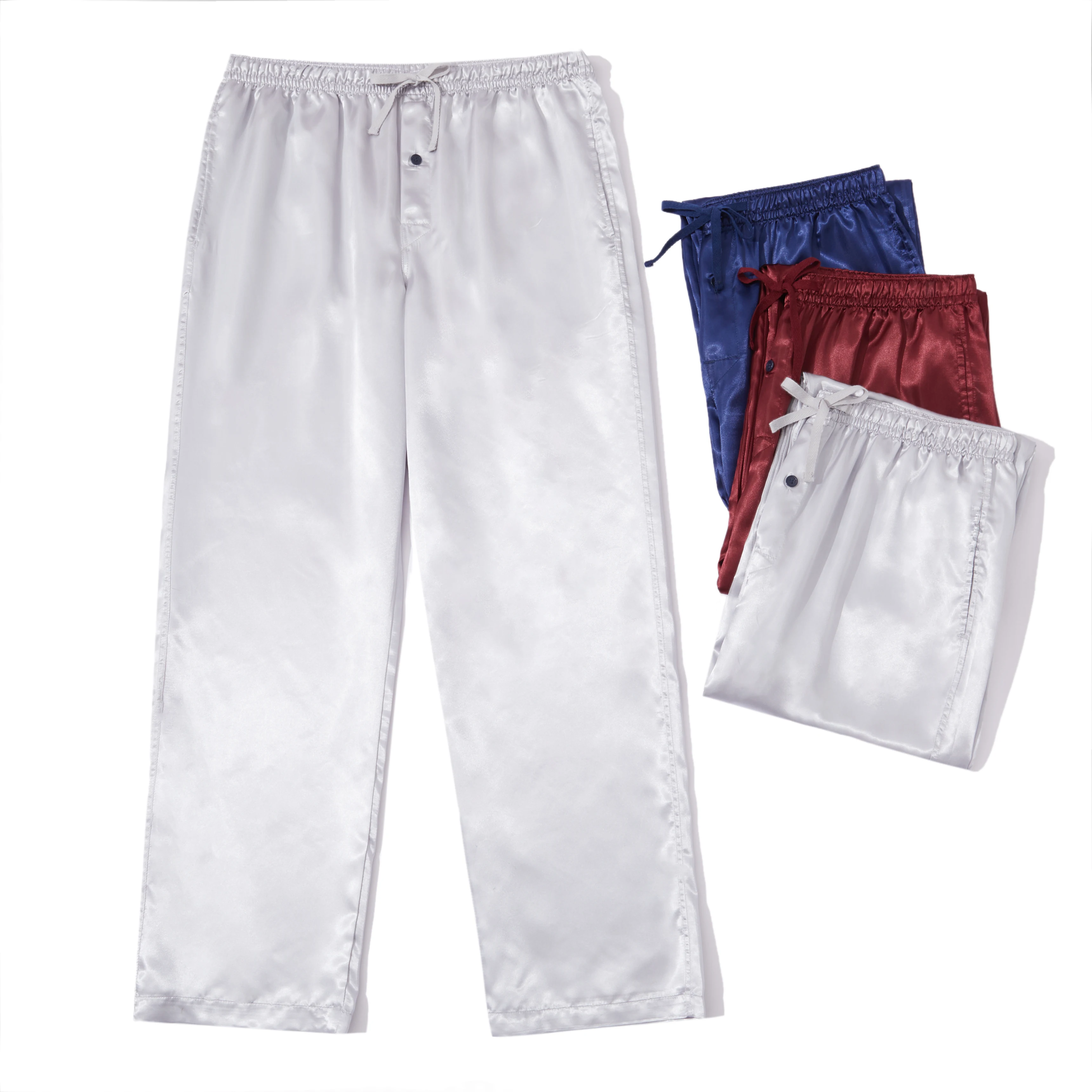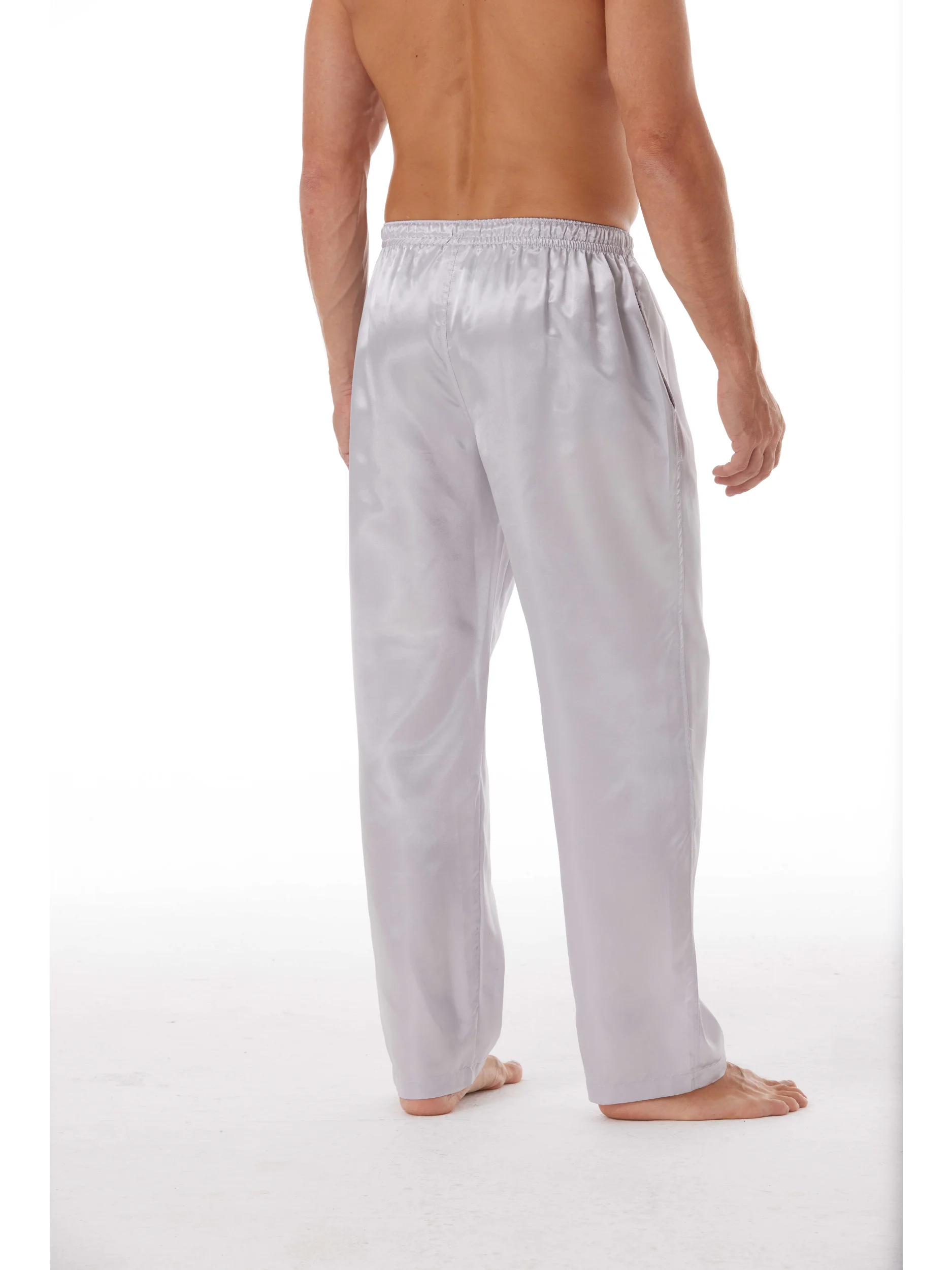 Pantalon de pyjama en Satin pour hommes, 3 pièces, confortable, avec ceinture élastique et poches, couleur unie, vêtements de nuit décontractés, automne