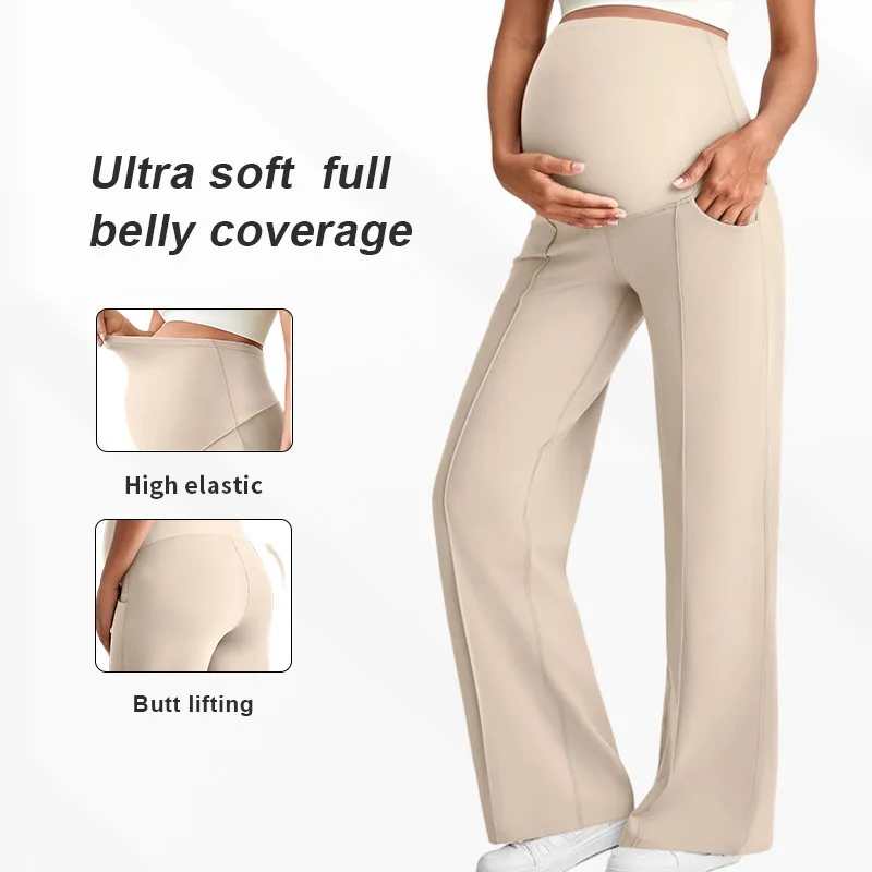 Pantalon droit de maternité grande taille, taille haute, pour femmes enceintes, jambes larges, vêtements d'extérieur, ample, automne-hiver, 2026