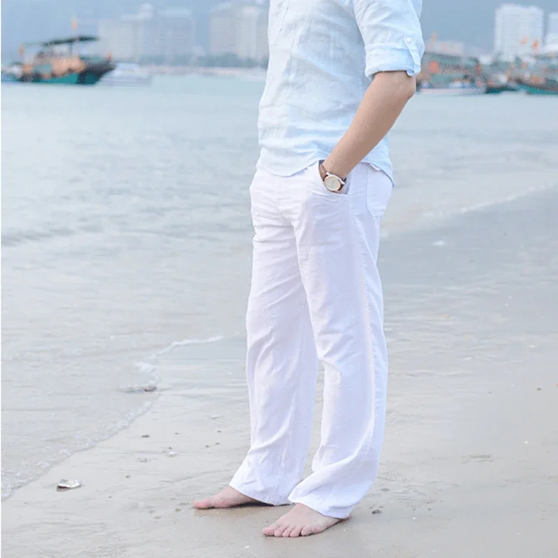 Pantalon en coton et lin pour hommes, ample, Cool, décontracté, Long, taille élastique, pantalon Long décontracté, grande taille, Streetwear, léger